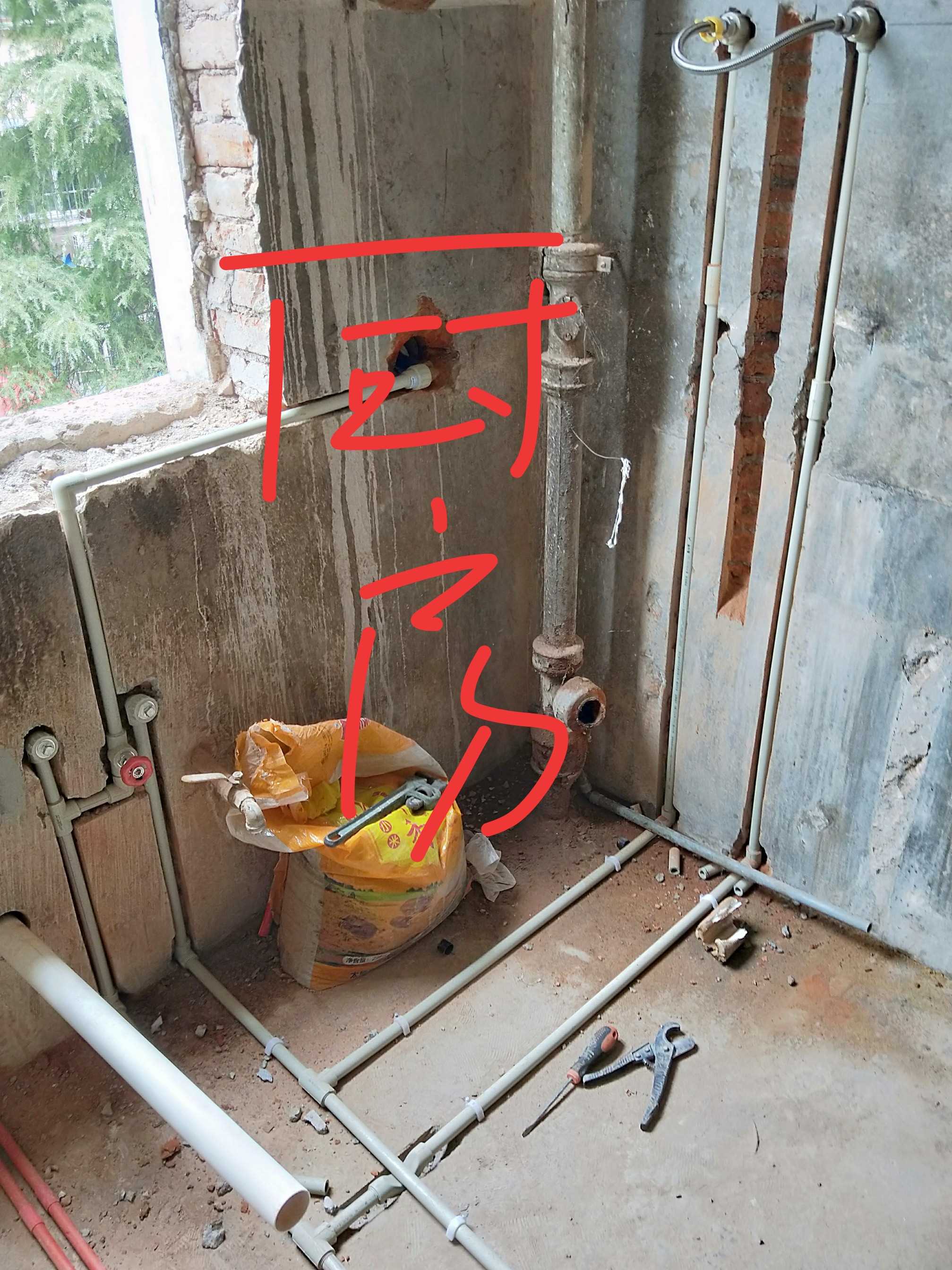 ③水路全部走的地面,根据规定,至少卫生间水路应该从顶面走。
