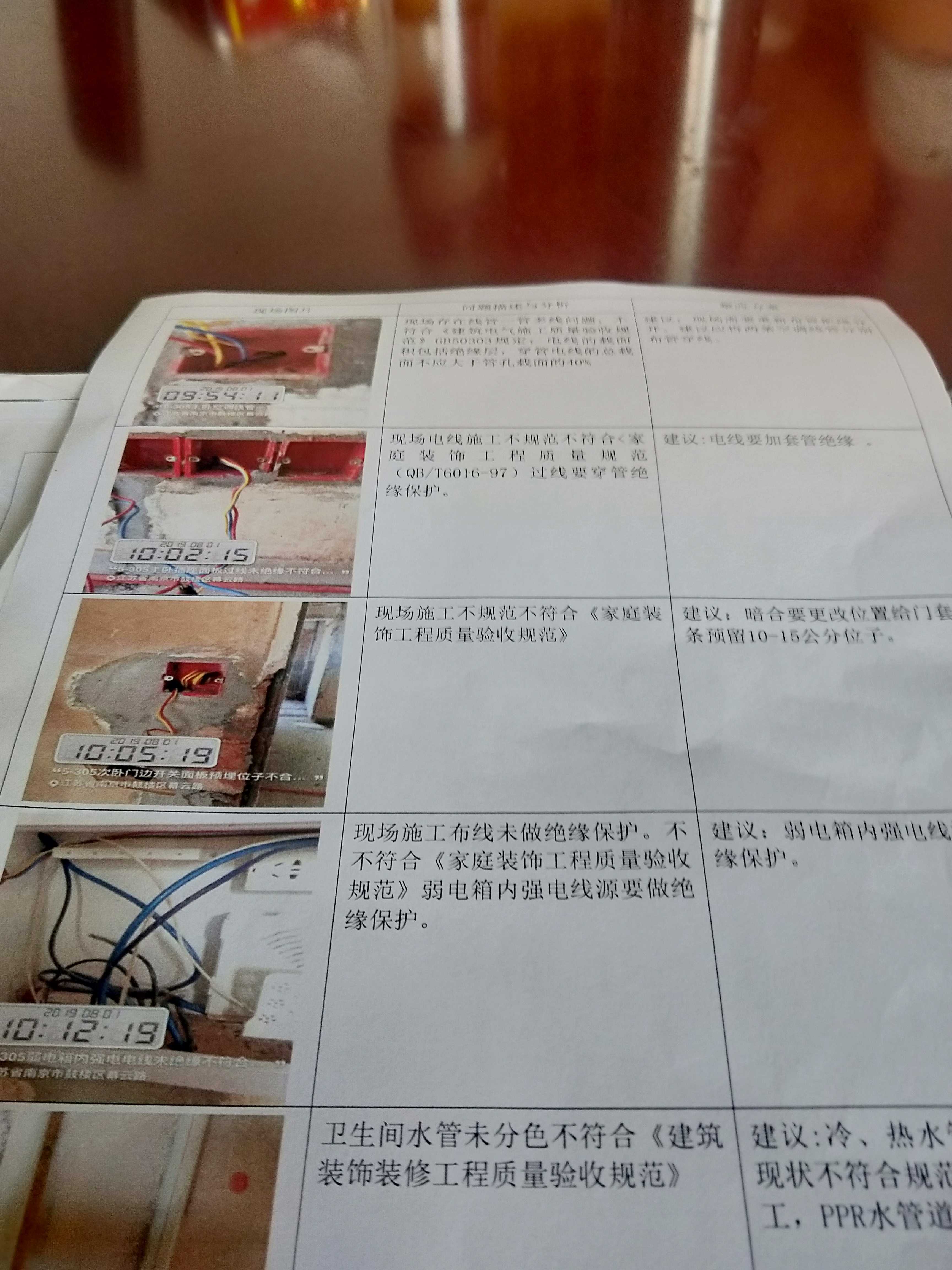 客户在58同城上浏览上,58同城给客户推荐了好几家装修公司,客户选择了佬匠,半包,7月1日签的合同,7月5日进场,7月17日下午水电结束。7月16日客户让其他家的水电师傅帮忙看下,提出了好几个整改的地方。也问了有资格证的,都发现有共同的问题。