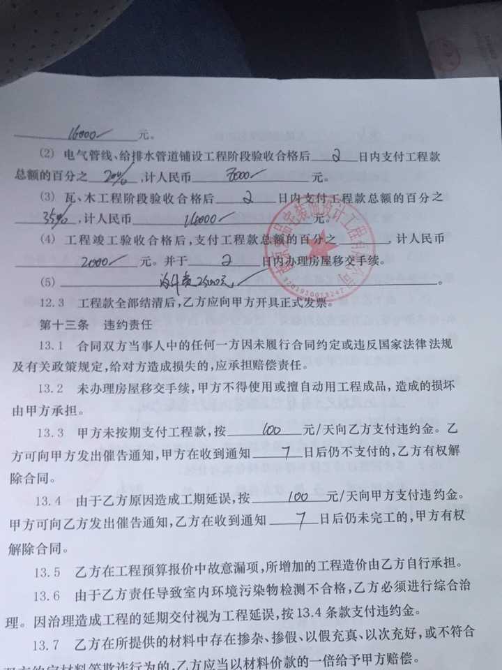 1、时至今日,原本合同签订3个月的工期,到现在已经5个月了,油漆工尽然直接做了两个月,而且还是在天天催他的情况下,才刚刚做完。一开始说是自己的工人、装修队,其实都是找的市场的上游击队带你施工。