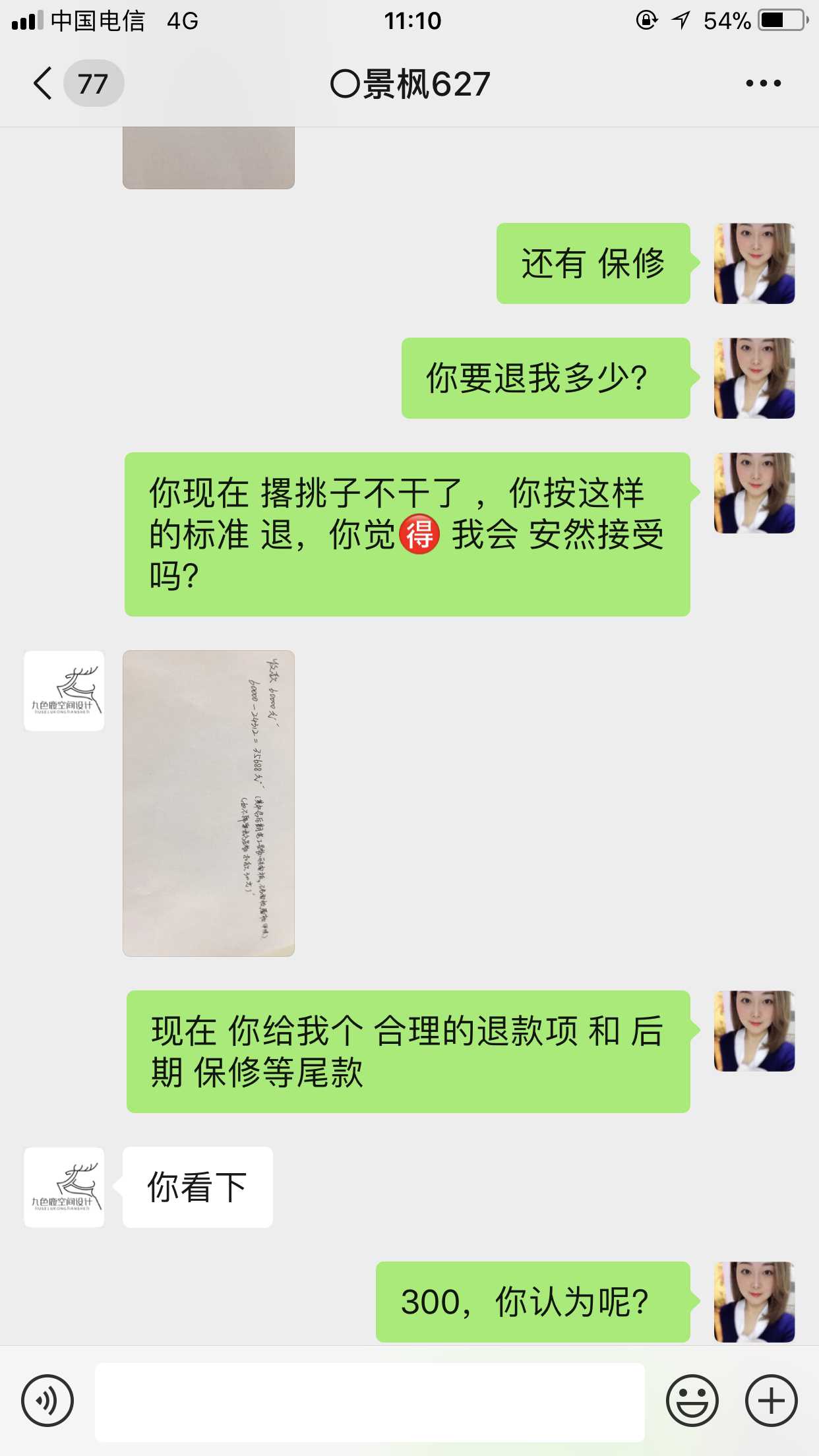 | 投诉类型 | 不讲诚信 | 投诉人 | 李** | 被投诉单位 | 南京九色鹿空间设计有限公司 |