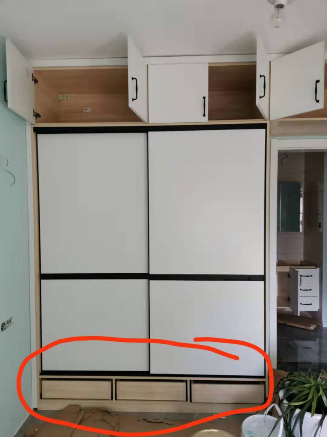 2.主卧的抽屉缝隙很大而且把手也没做 阳台 客厅的封板都没做到顶? 缝隙特别的大
