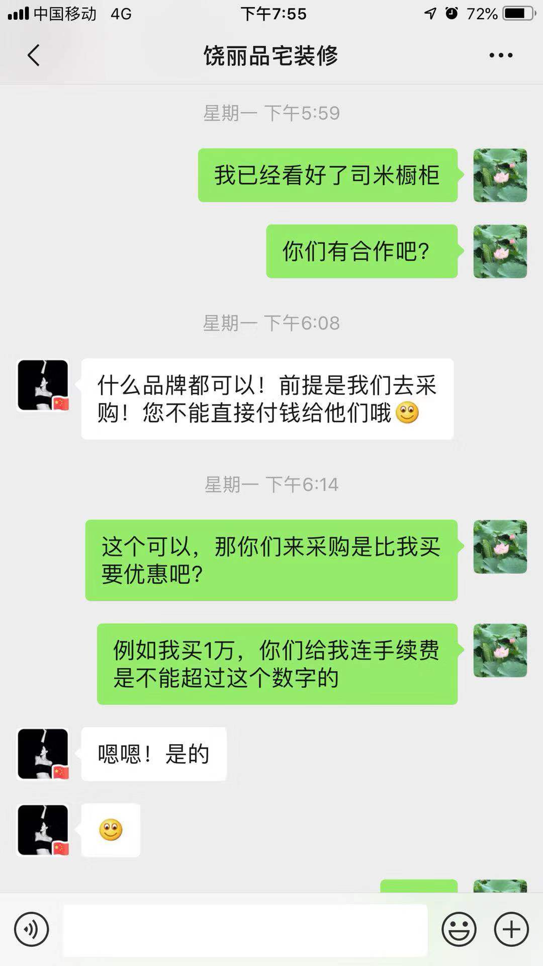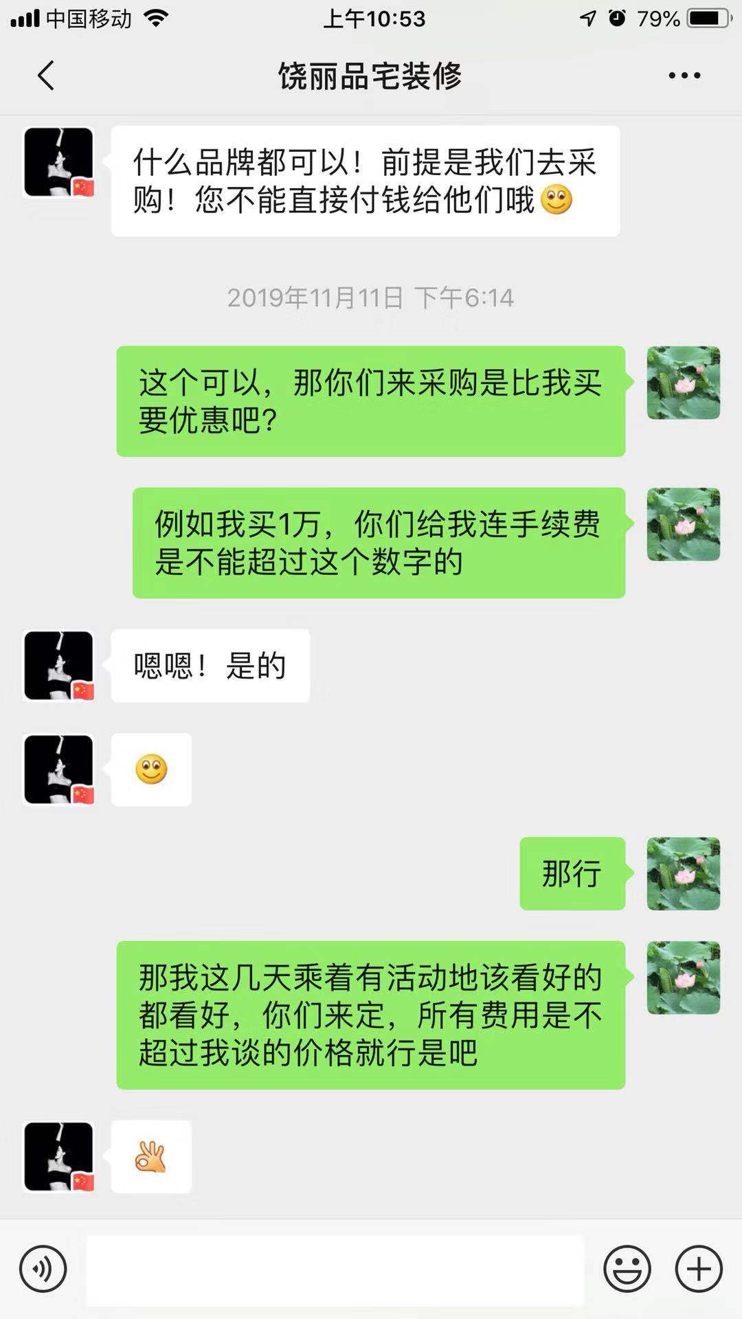 之前承诺帮助消费者代购主材时可以选用市场上任意品牌的主材,他们和厂家有合作可以拿到比消费者更低的价格,现在全部不承认之前所做的承诺,说只能选他们指定的品牌,且沟通无果,装修公司中途换了一个人来谈态度恶劣。