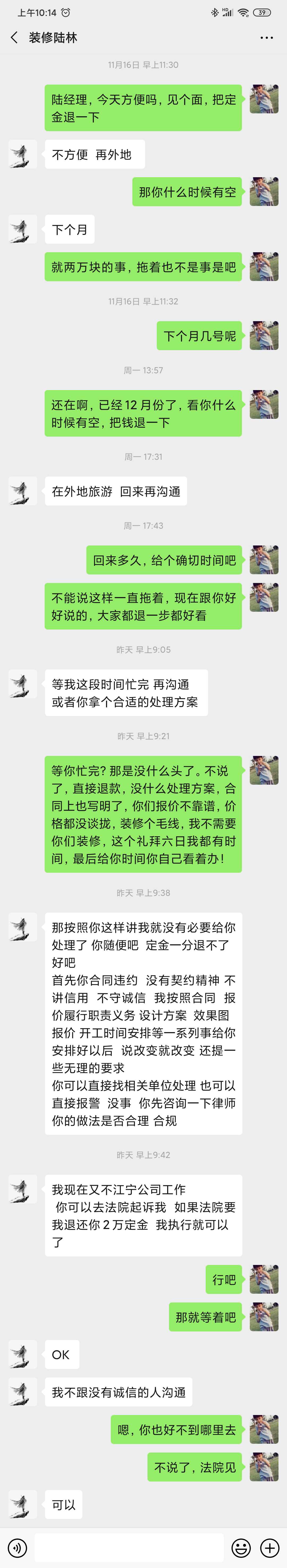 2019年10月份房子需要装修,由鲁公大宅吴设计师设计,给了一份电子半成品装修效果图(上下两层,只给了一层的效果图),由于对方要求增加费用,从原合同定价13万追加到15.7万,我方表示不愿意,并多次协商要求更改设计方案,无法把价格做到合同定的13万内,我方表示协商解除装修合同并退还定金。多次联系原鲁公大宅负责人陆林要求退还定金,对方一直因不方便,在外地等问题拒绝与我方沟通,要求我方直接走法律程序。