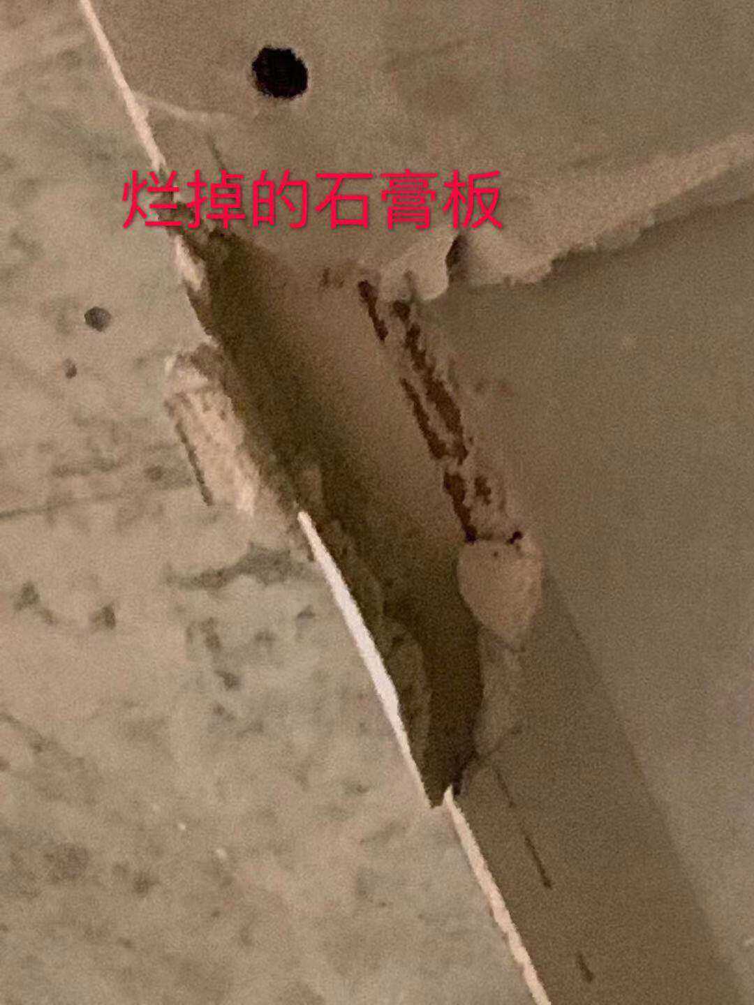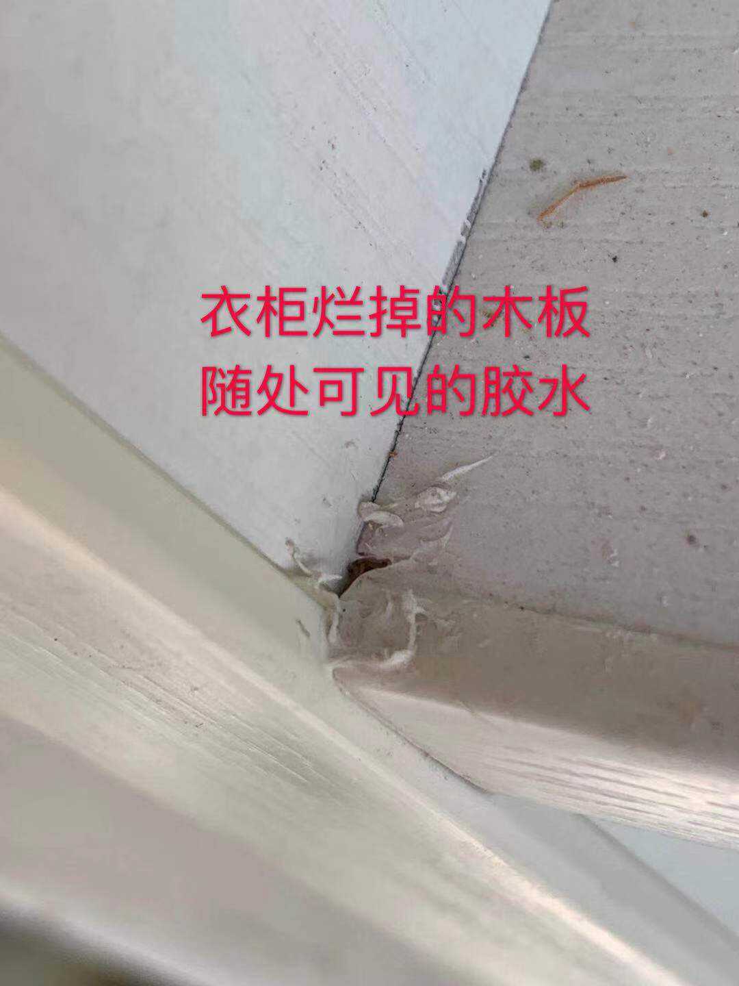 2)木工手艺极差,烂的木板打吊柜,烂的石膏板做吊顶,柜子格局随意打造,铆钉随意粘贴