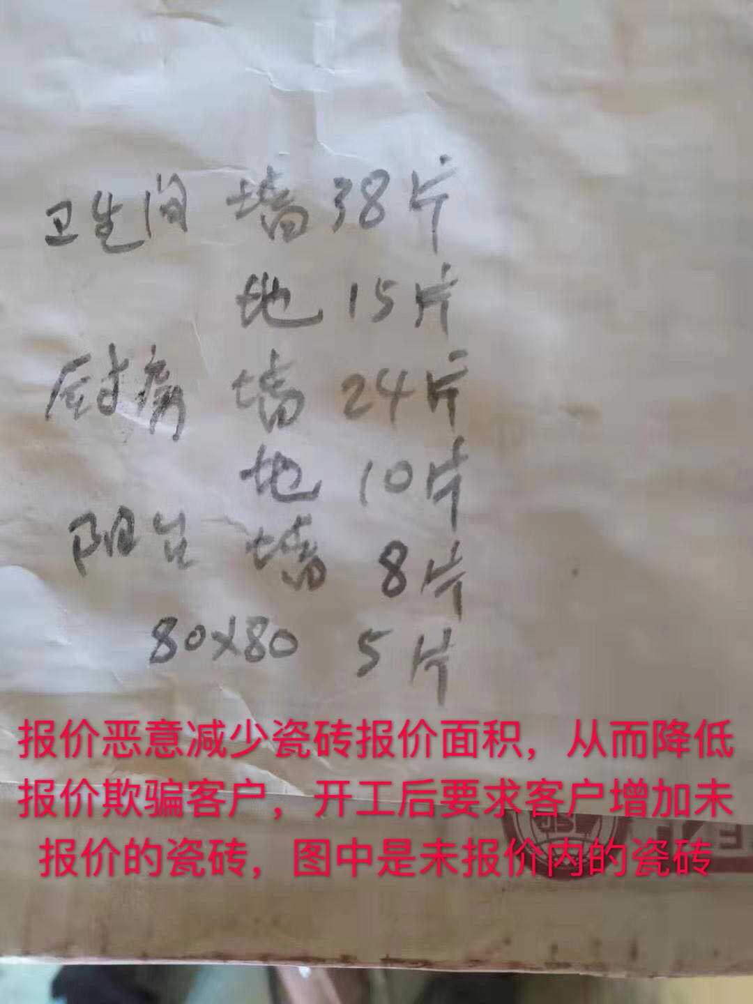 2、恶意减少瓷砖铺设面积,恶意减少飘窗数量,以此降低总报价,忽悠客户签合同