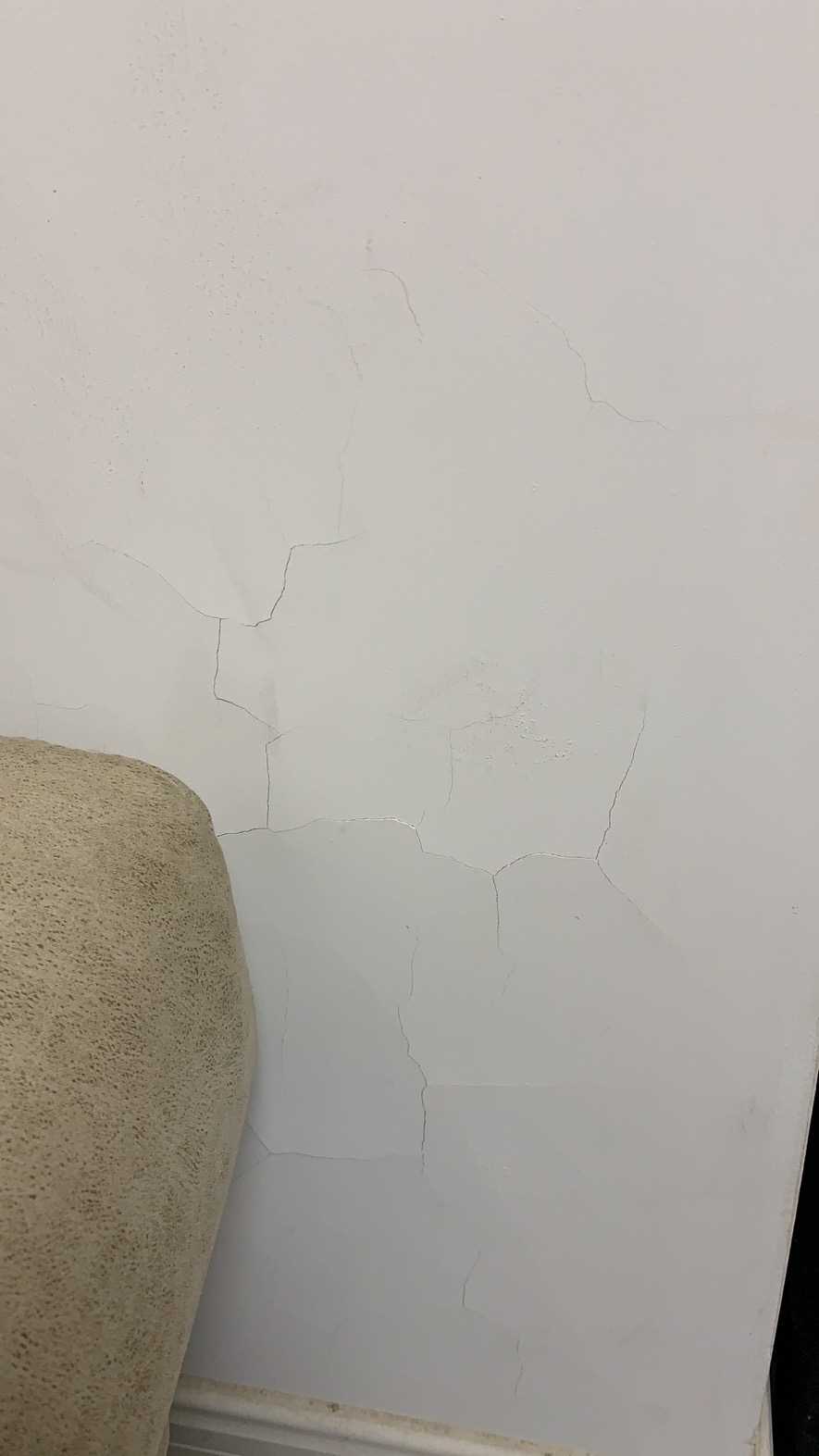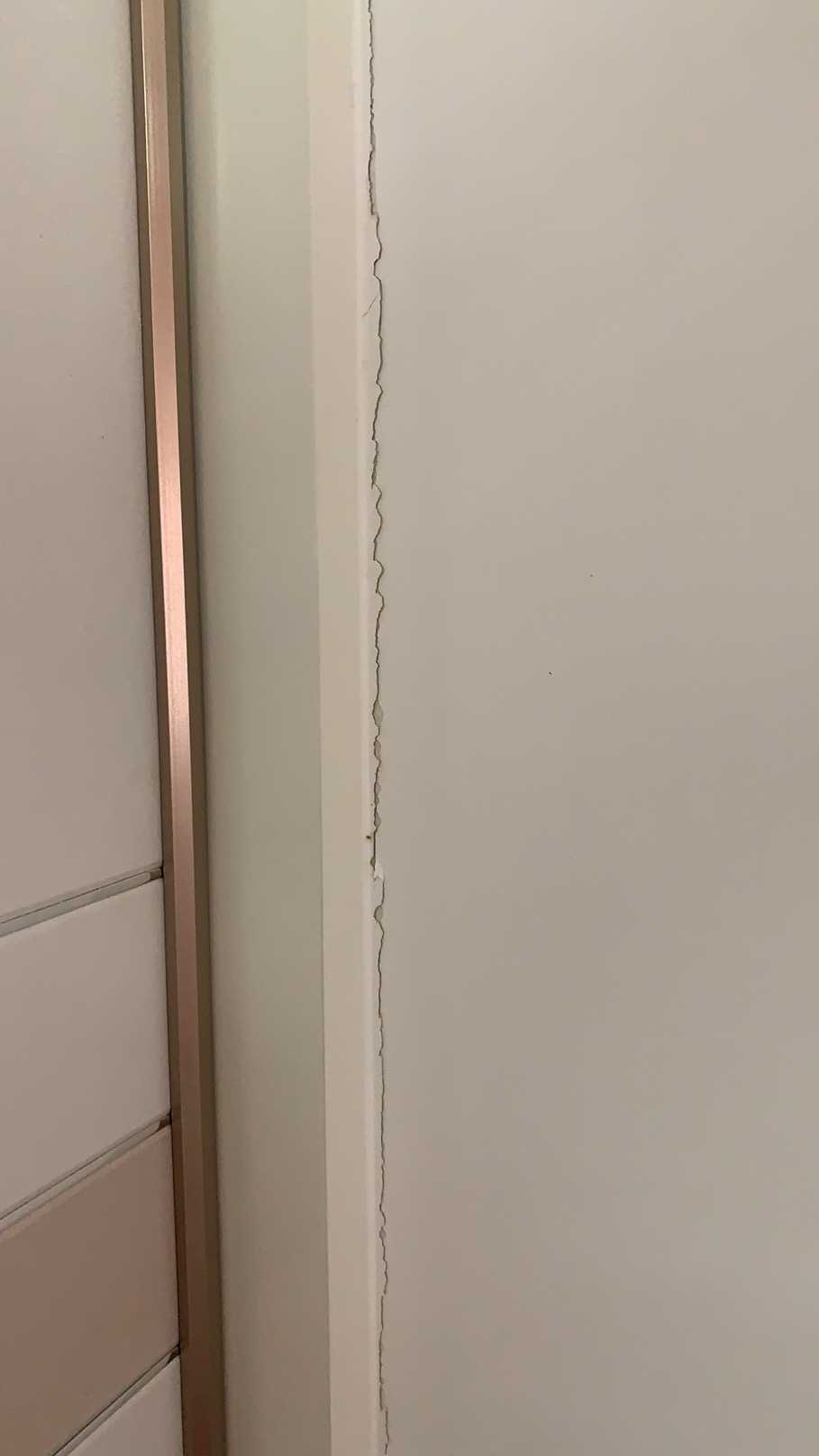 装修公司说墙体开裂得等到夏天过后再处理比较好,业主9月份开始一直催,直到11月份底才有一位师傅上门来,当时师傅上门看了情况之后说简单刷一下还会开裂,说自己带着材料不够要回去取,说下次再来。然后就没有然后了,一直联系魏总也一直说忙。