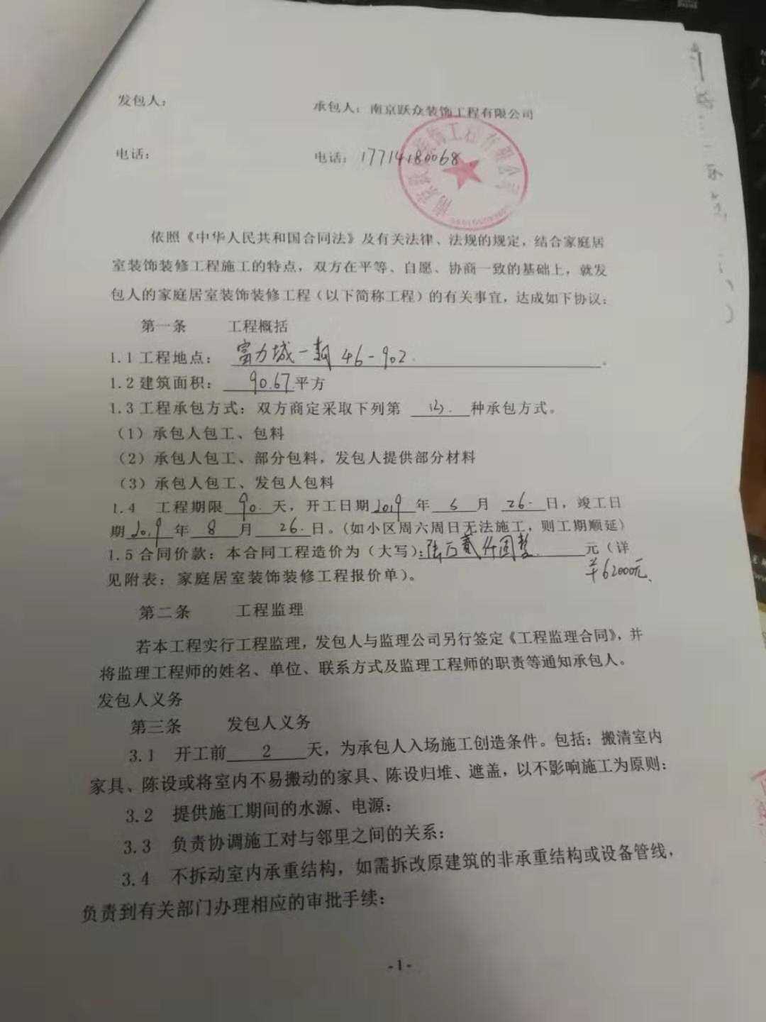 跃众装饰 所在卖场:南京装修公司,点击查看此卖场相关投诉信息