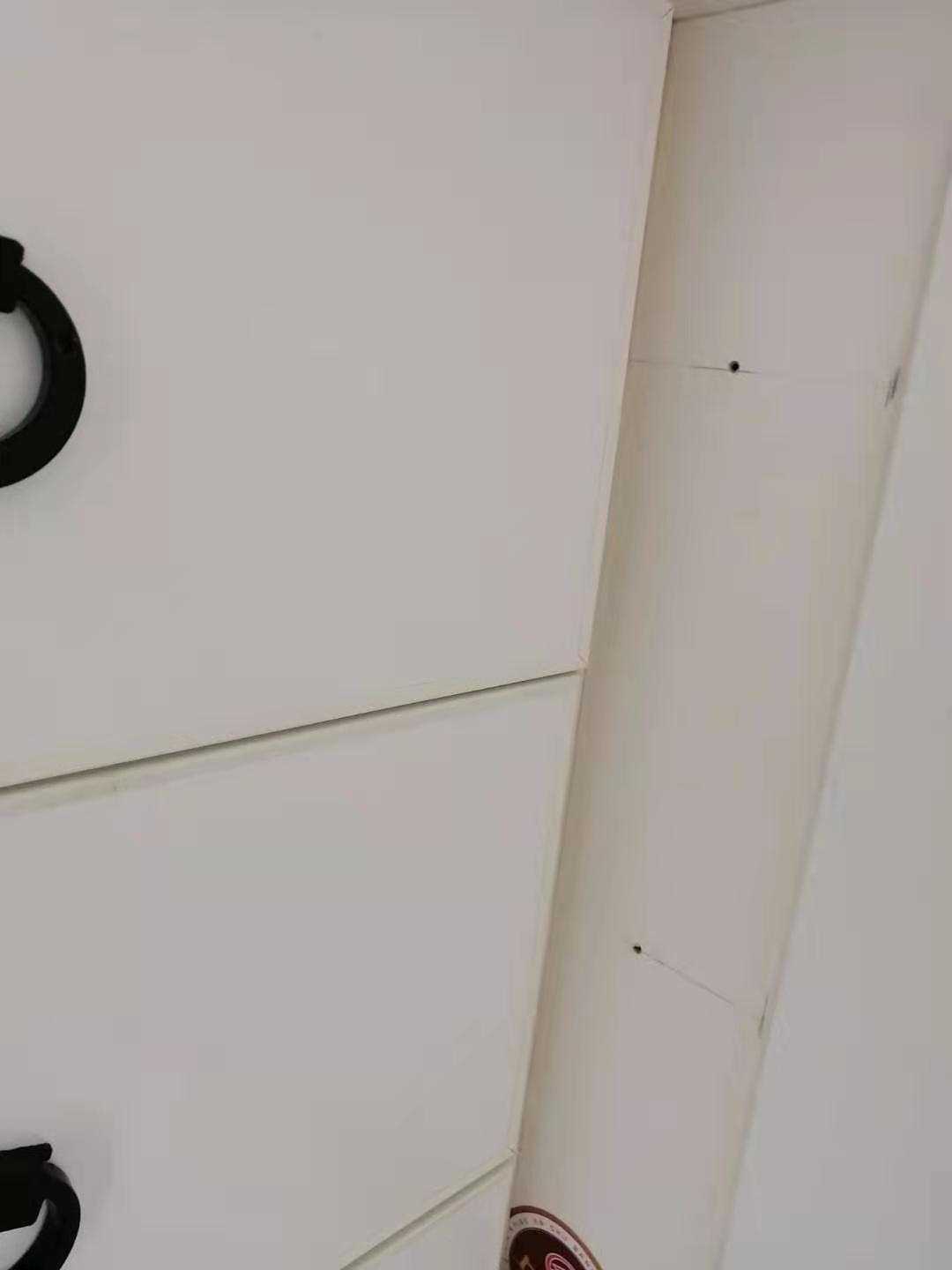 木工问题:次卧三个抽屉全部做大,导致柜门无法安装,后全部重新改抽屉尺寸,柜体里全部都是钉眼。