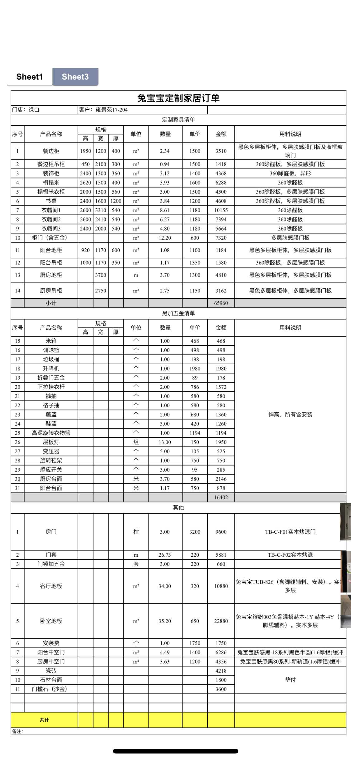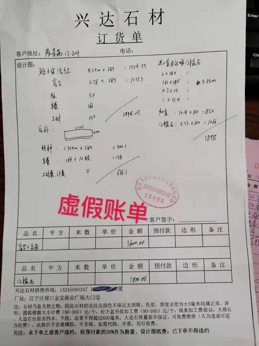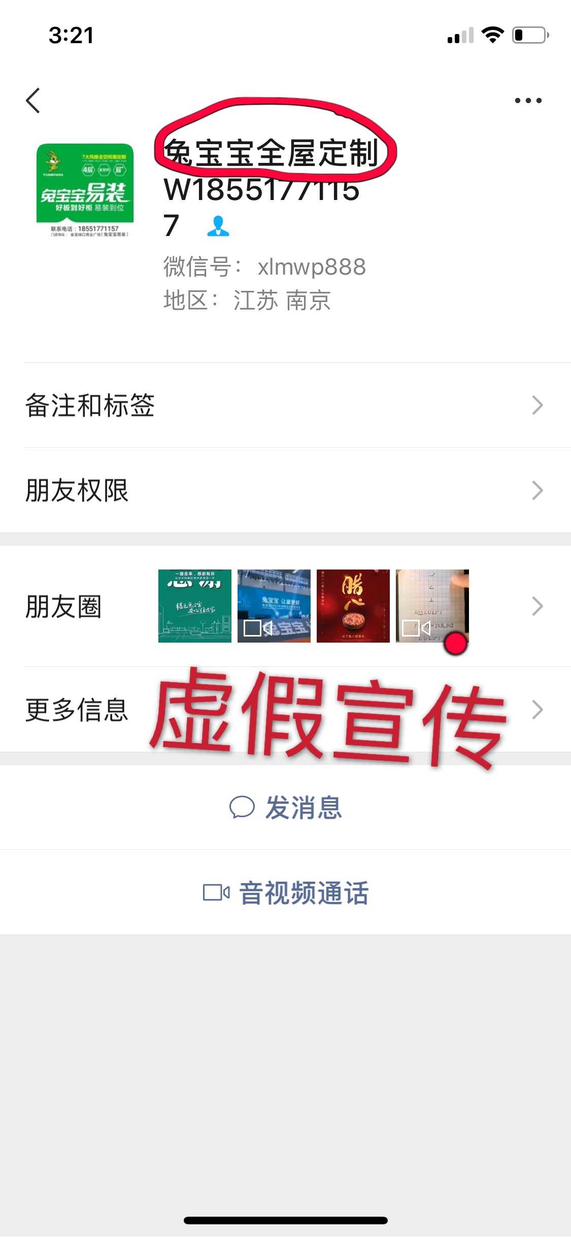 另外禄口兔宝宝易装在报价单上进行虚瞒,声称已帮我们垫付了瓷砖钱和门槛石钱,但经我们与店家证实,并且付款。而且商家给的石材报价,经证实并不是石材店家开具的,而是事后做的虚假报价。在12315投诉站的另一条投诉信息中,我还了解到此商家没有做全屋定制资质,是易装店,家具生产厂家与兔宝宝毫无关系。