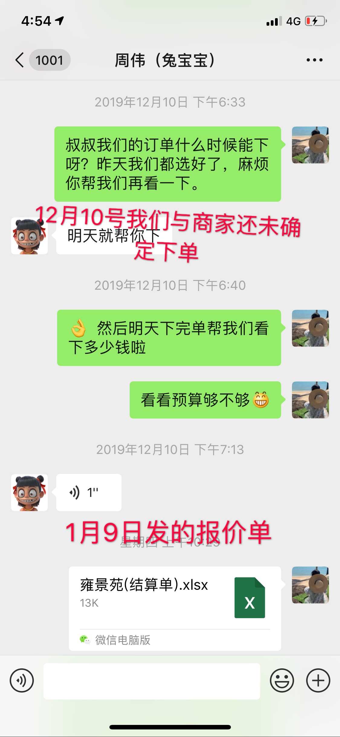 定制过程中禄口兔宝宝易装不告知商品价格,期间我们多次向禄口兔宝宝易装要报价表,禄口兔宝宝易装故意拖延,1月9日,禄口兔宝宝易装第一次给我们发了报价单,同时上面的产品总值已高达十六万元。并告知我们订单上产品多为定制产品不可退订,我们多次寻求议价未达成一致,禄口兔宝宝易装态度蛮横声称退款不可能,强买强卖。