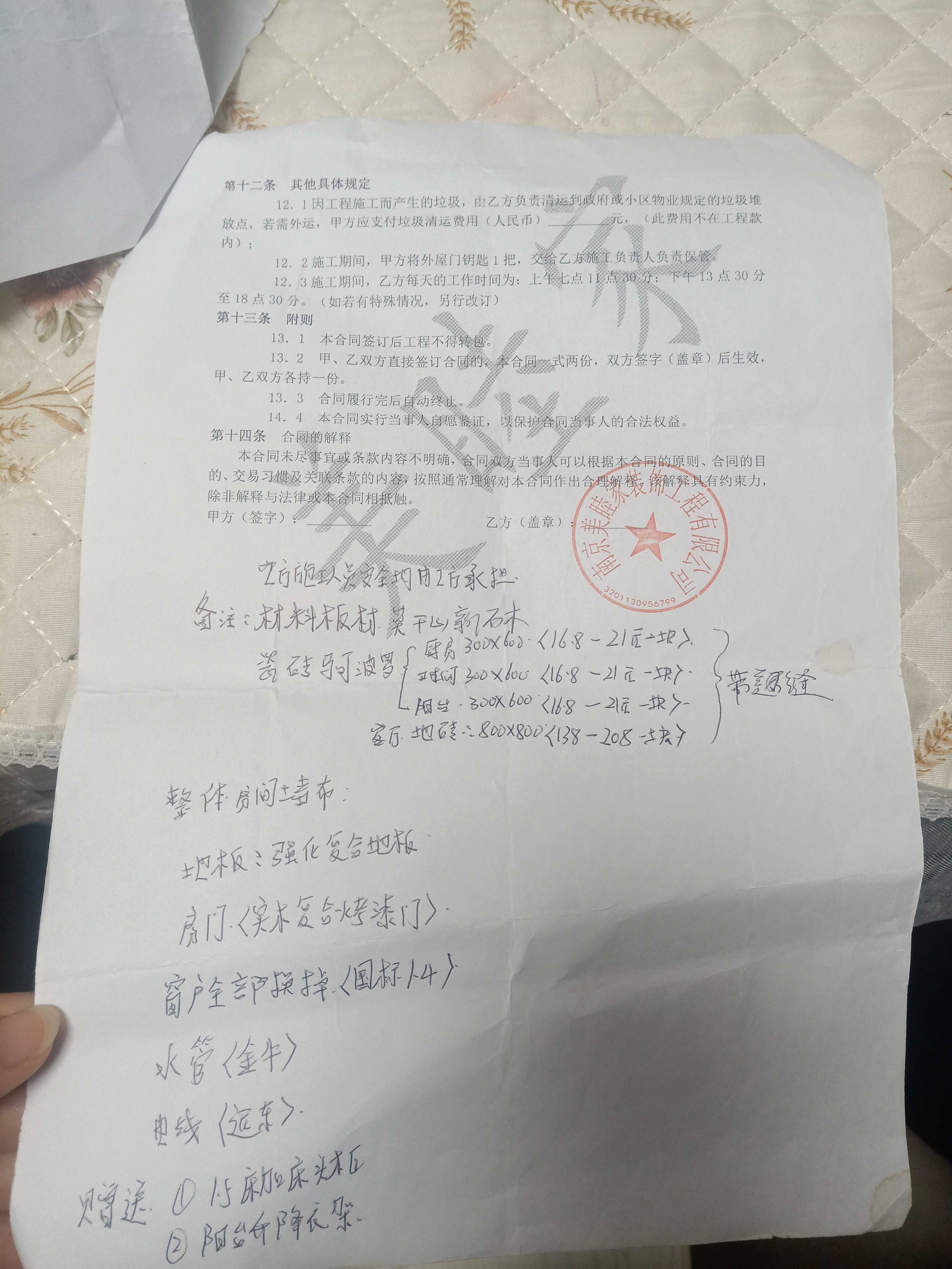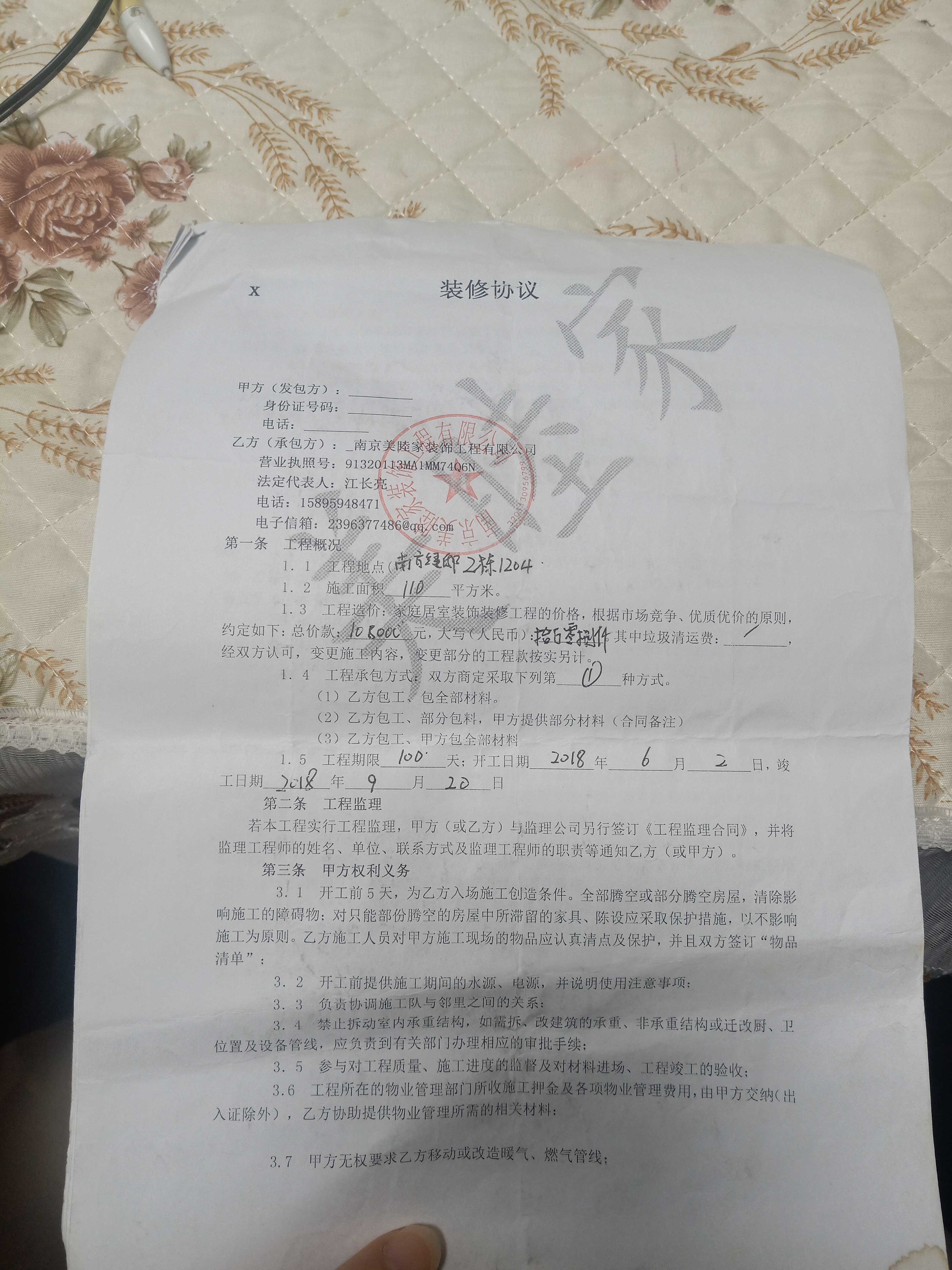 南京美睦家装饰工程装修18.6-19.1交付,现在不到一年变出现各种问题,严重存在安全隐患。并且该公司存在信誉以及人品问题。信誉问题是说好当时工期为一百天,一百天后交房,但是该公司硬生生又拖了三个月,所以该装修为期六个月,存在明显的拖工程,浪费业主的财力以及时间。人品问题就是该公司的老板喜欢糊弄人忽悠人,美睦家装饰装修前和你说的好好的 等到账目结清后对你不理不睬,打电话推三阻四干脆最后不接电话,满嘴跑火车 说话不着边际。该公司的装修明显存在隐患问题,例如,五项插座外壳脱落,具有安全隐患问题,阳台衣服架吊顶开裂,存在安全隐患问题,两个卫生间马桶存在漏水的问题,下水管道漏水,瓷砖木地板存在问题等等一系列的问题,看似是小问题,但严重存在安全隐患,很严重怀疑他们南京美睦家装饰工程公司装修质量的问题