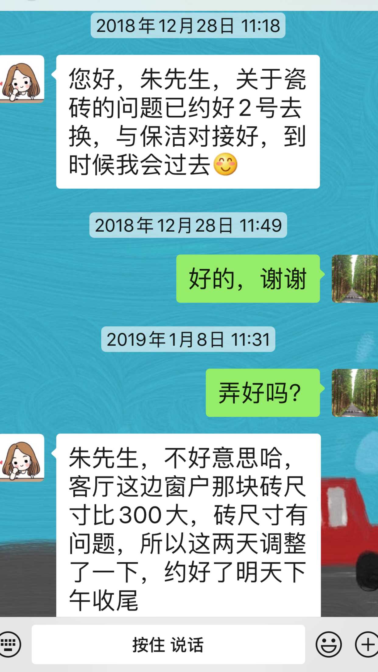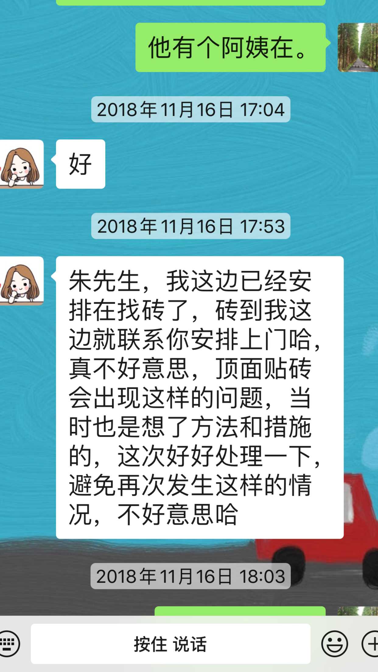 业主本人不在南京,装修公司建议业主去公司见面聊,然后进一步处理。投诉站跟进 | 2020-04-16 |
