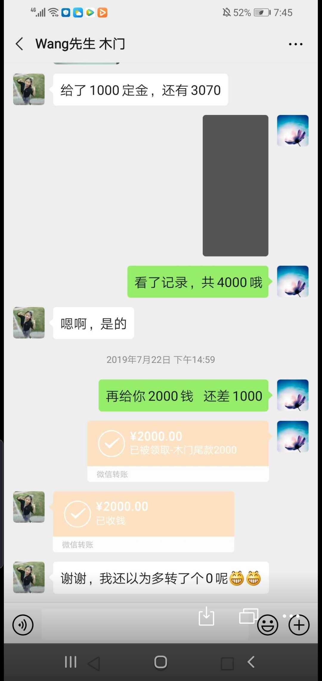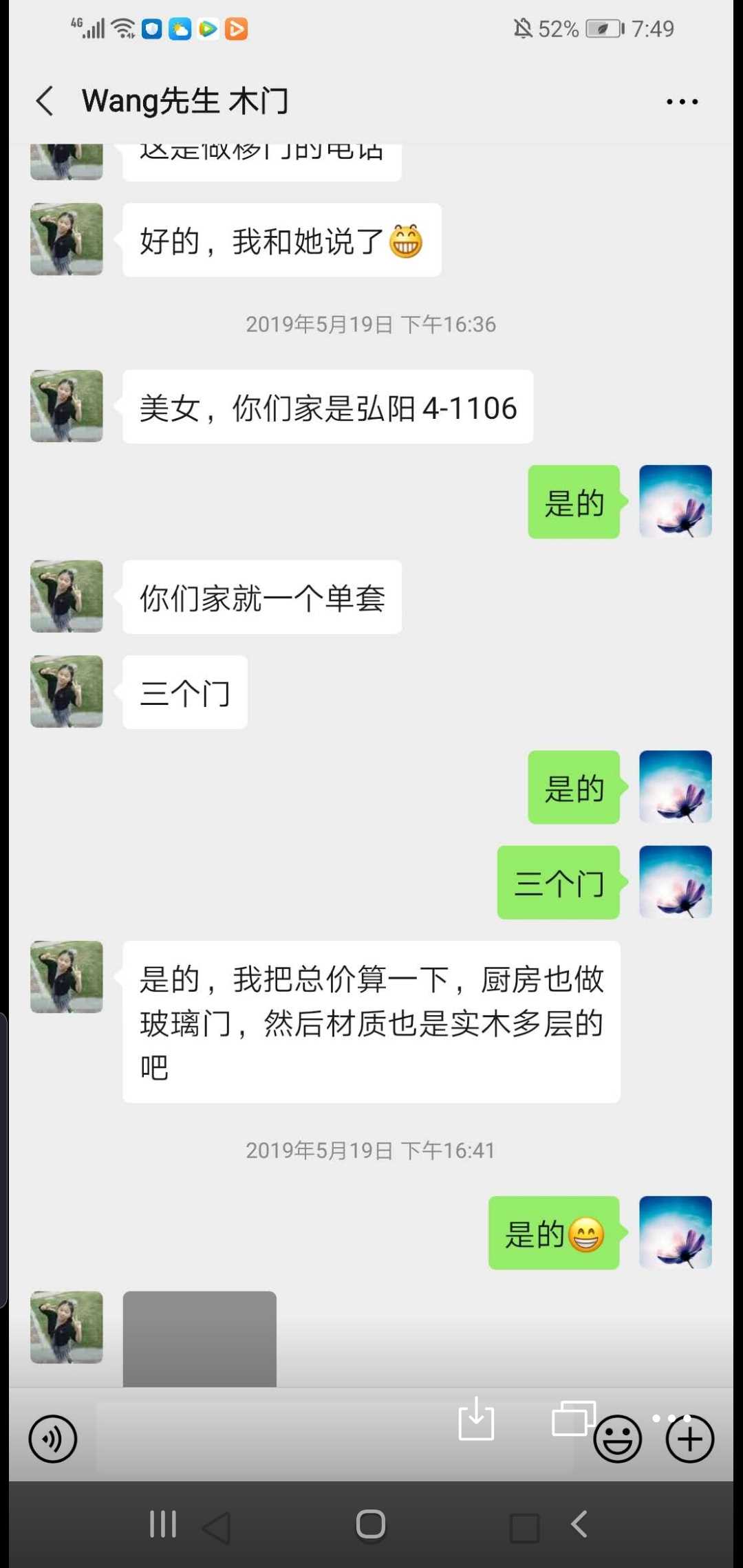 装修公司电话一直不接,已让业主自己去门店当面处理,去核实一下门的材质并索要与门一致的品牌合格证。 | 2020-04-16 |