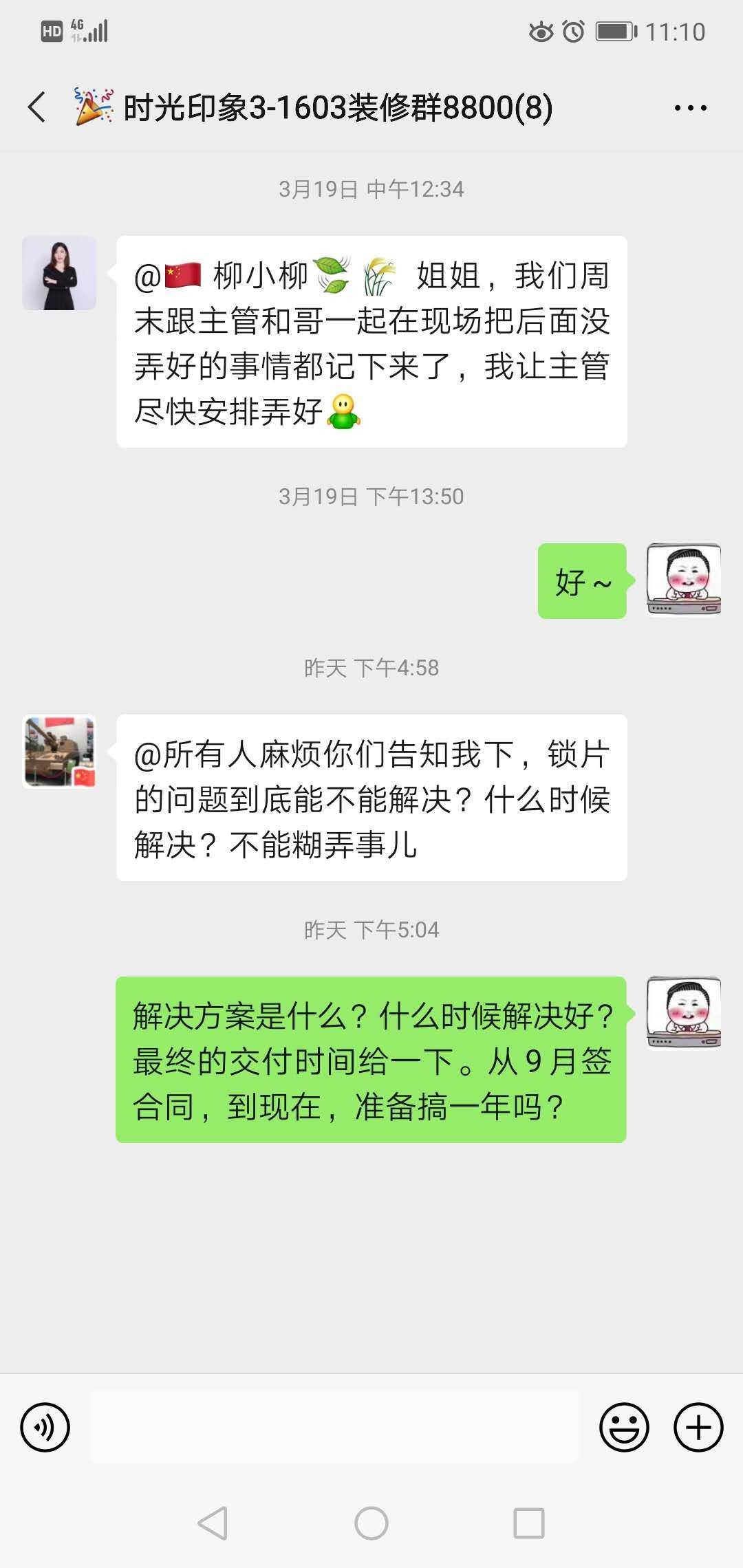 装修公司态度极差,直接回复现在很忙,不答理,不说话。业主又提供一个电话:姚13815870094 | 2020-04-08 |
