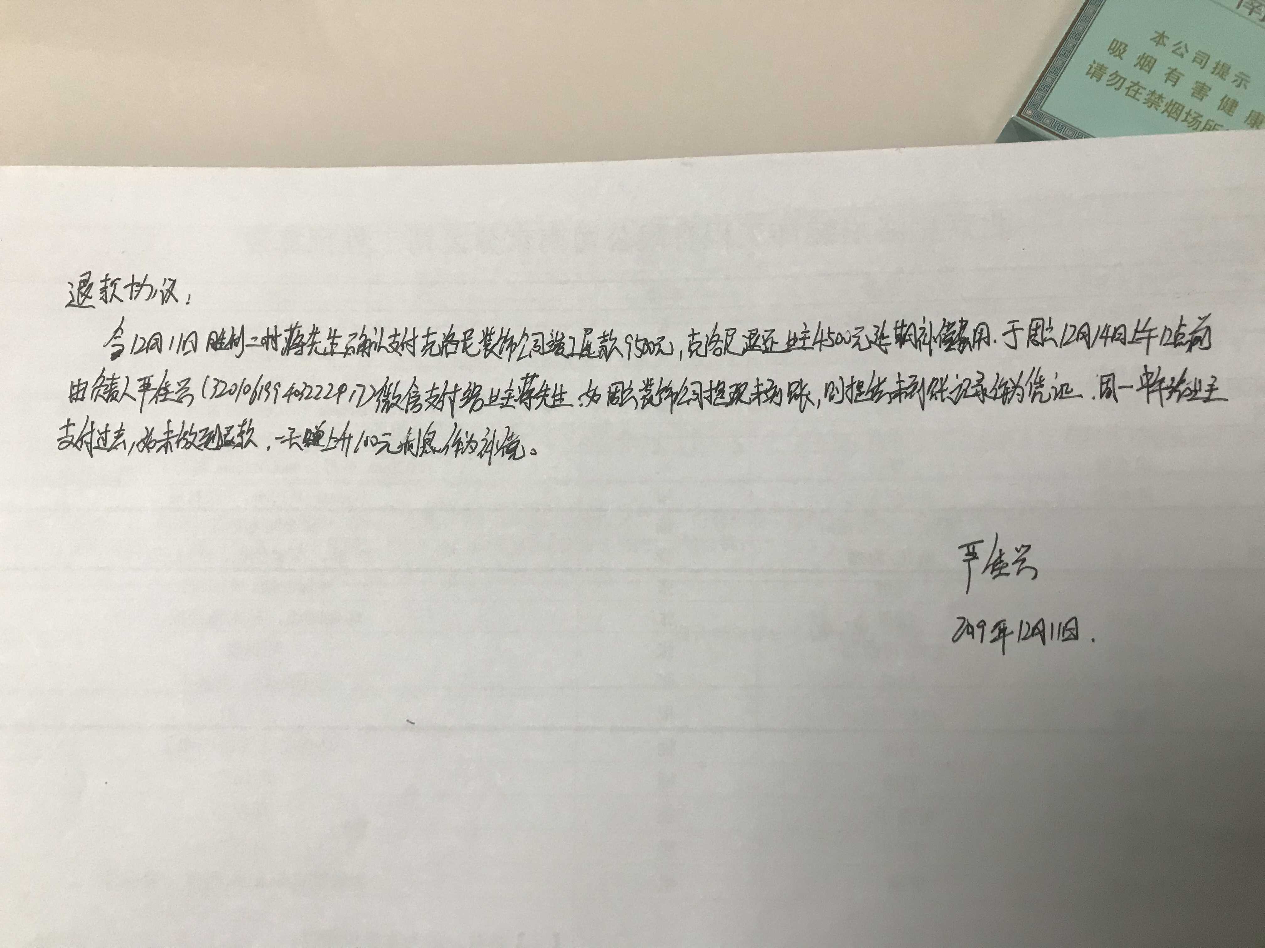 装修公司承诺下周费用到位,投诉站跟进 | 2020-04-09 |