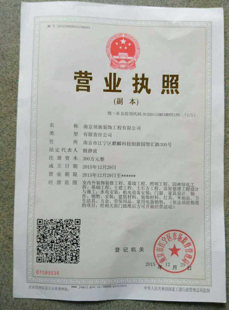 南京顶族装饰工程有限公司 所在卖场:南京装修公司,点击查看此卖场相关投诉信息