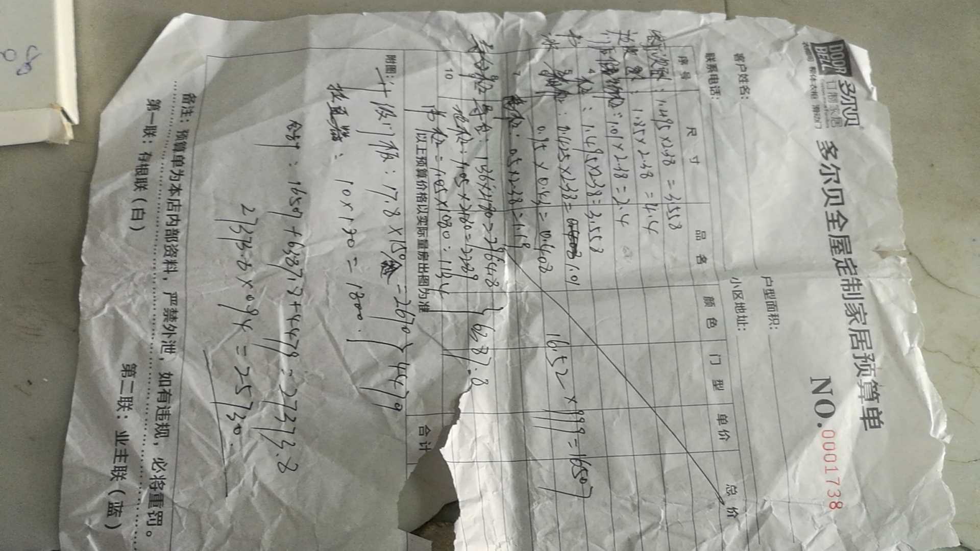 对 家乐家多尔贝定制家具 的投诉内容: