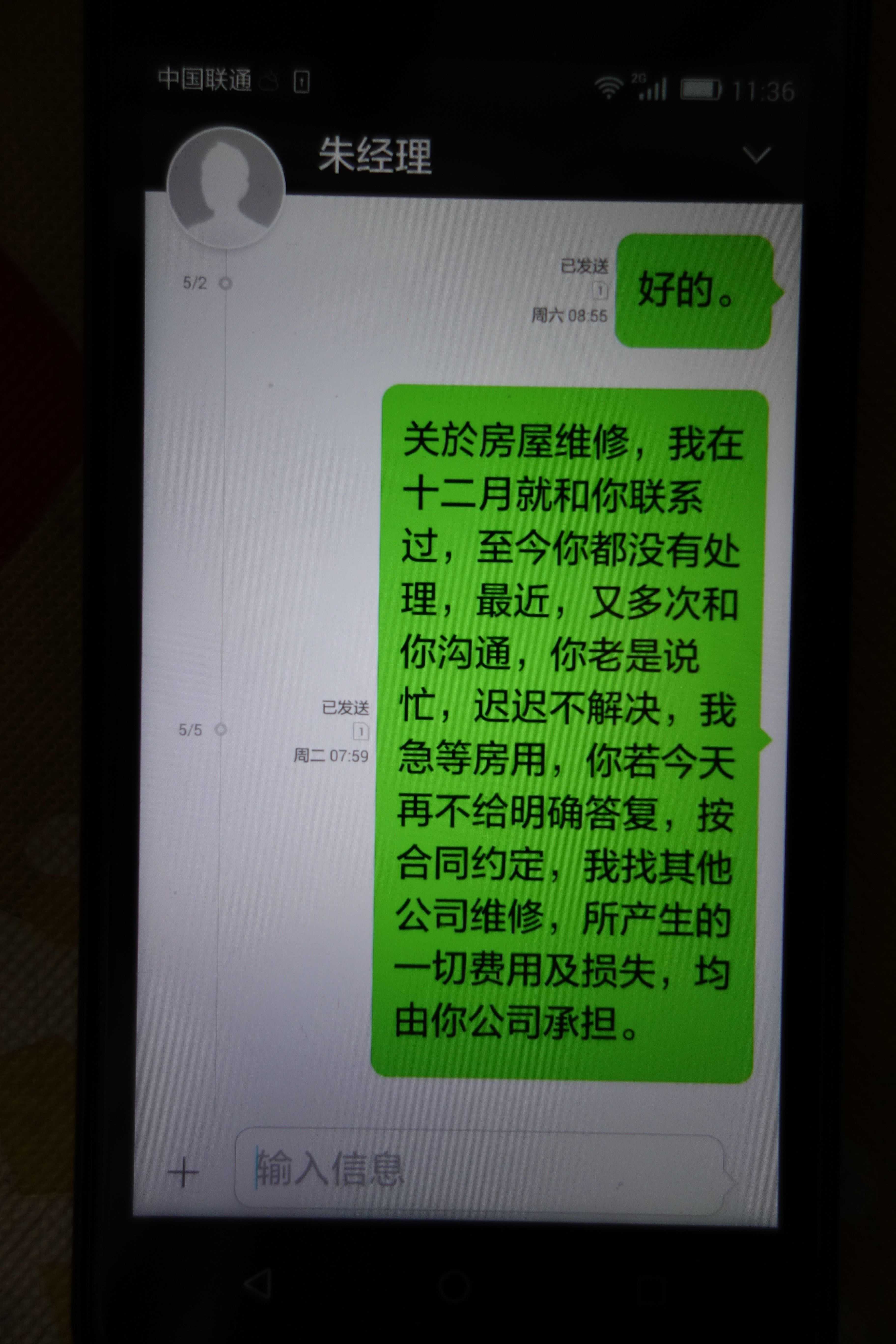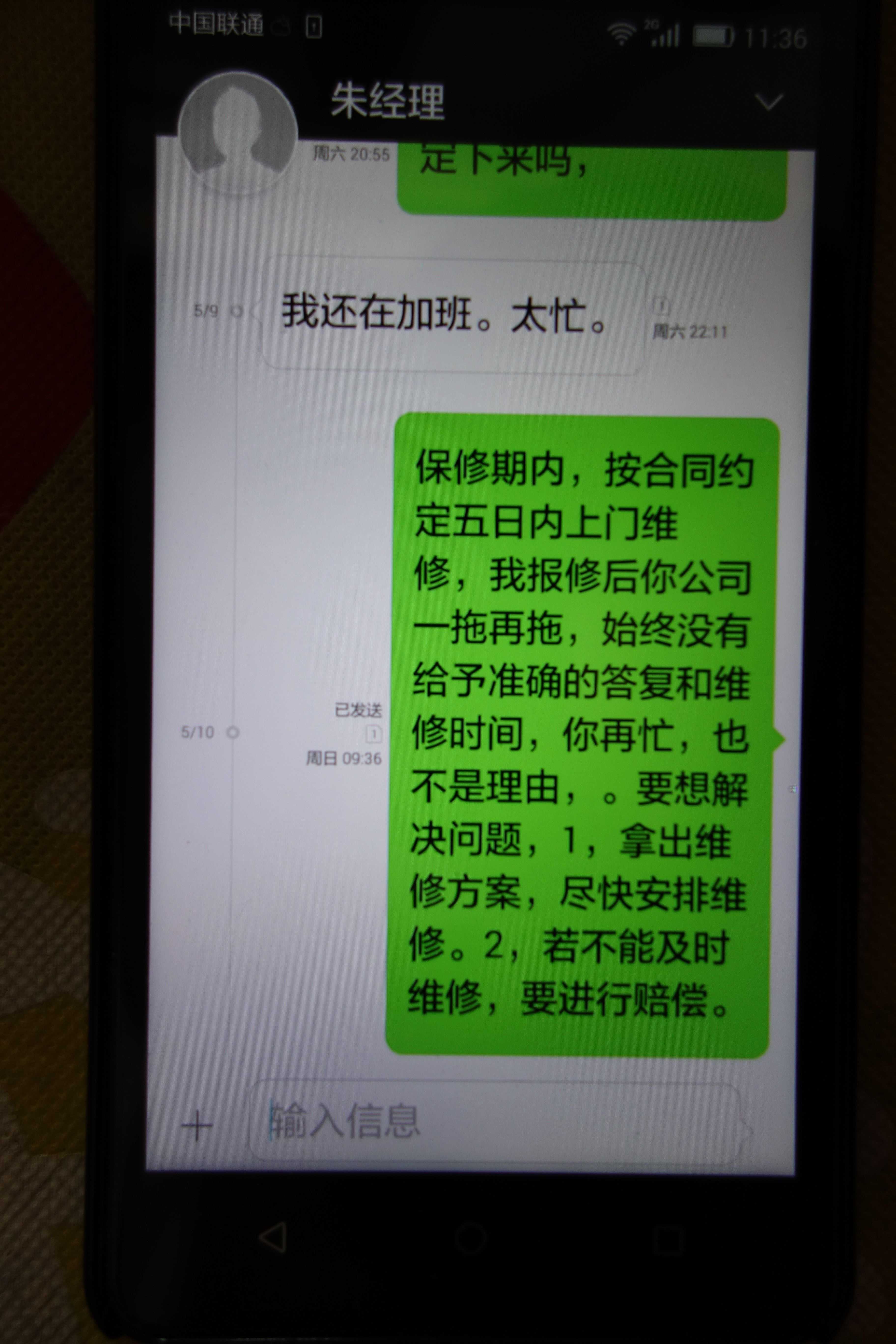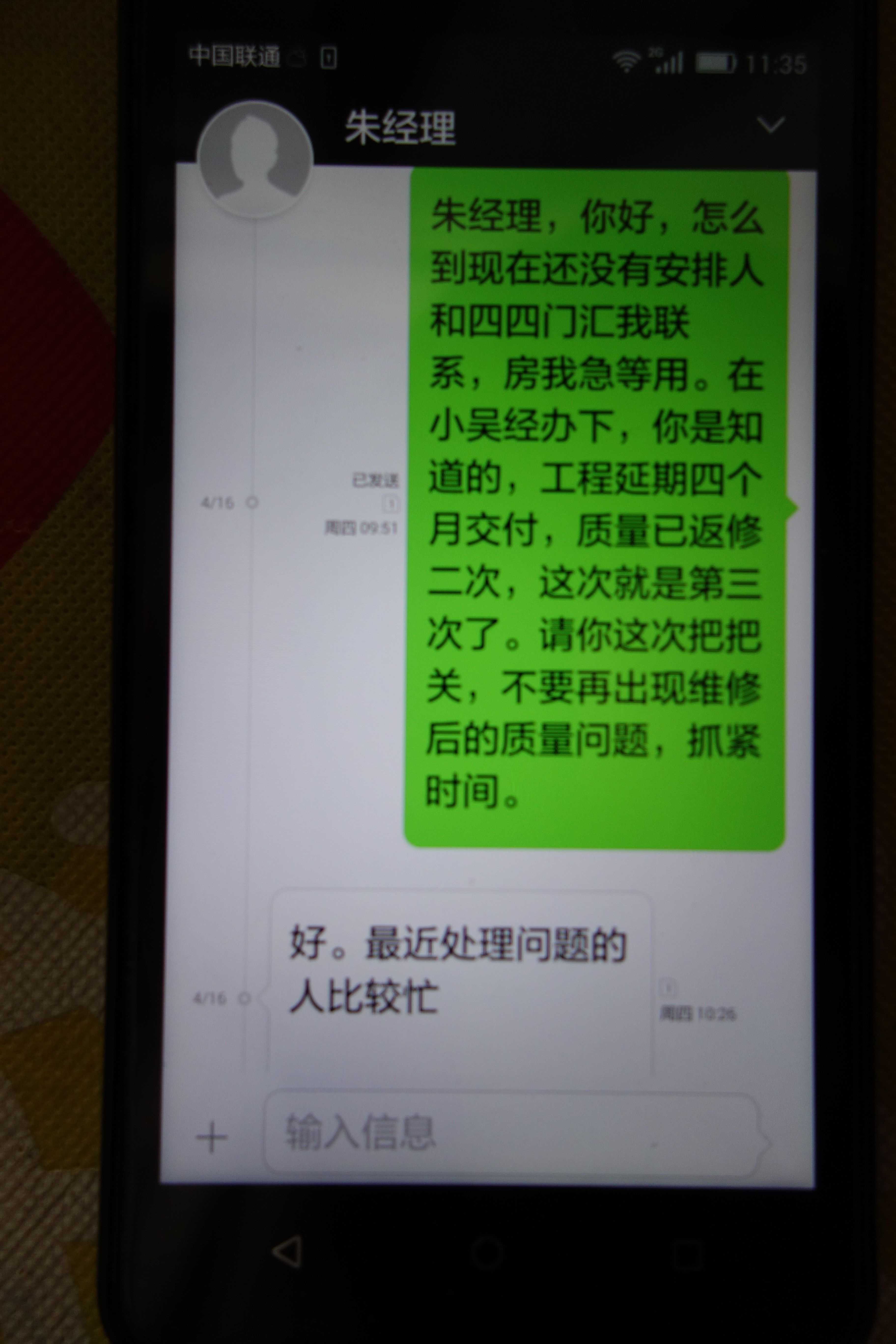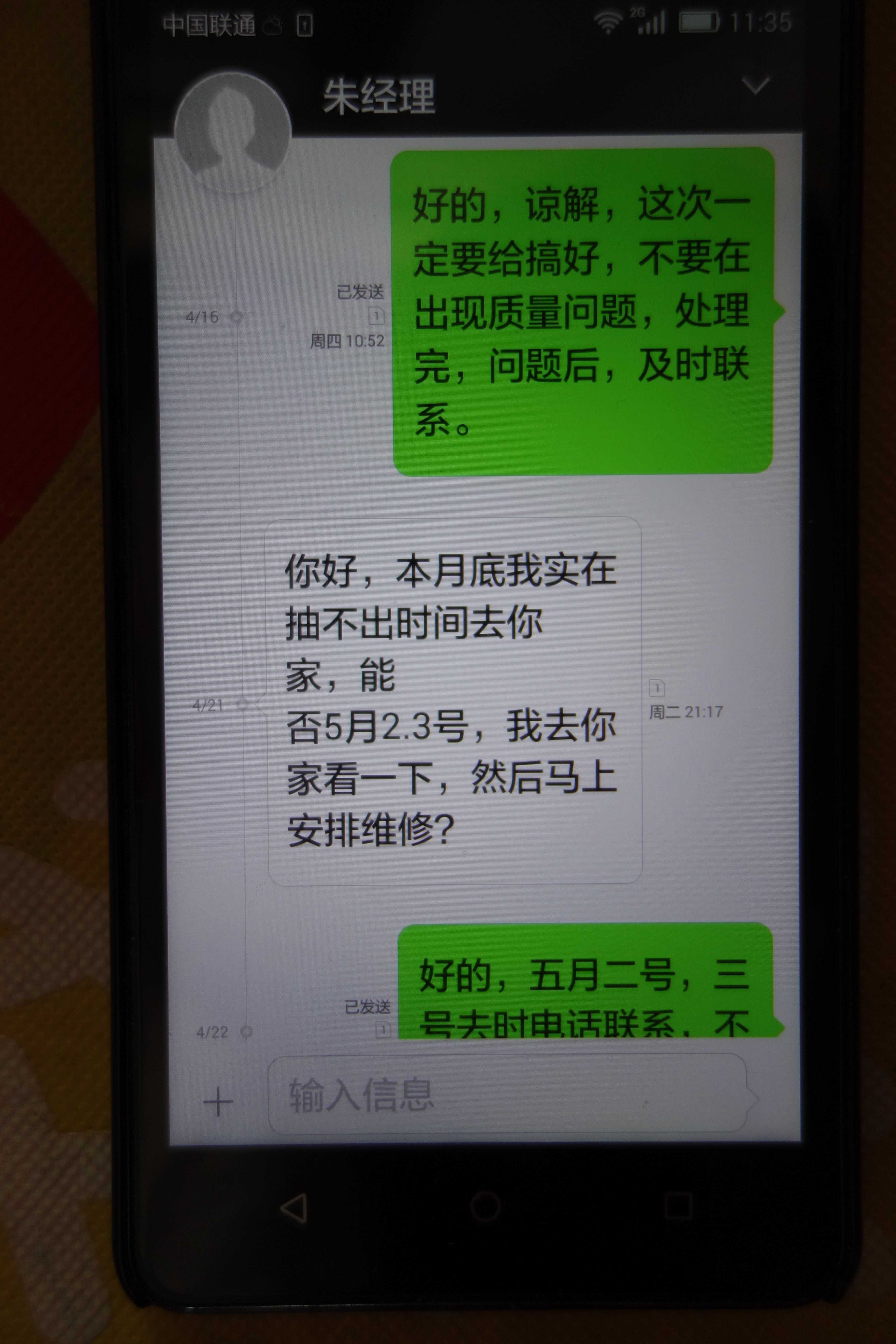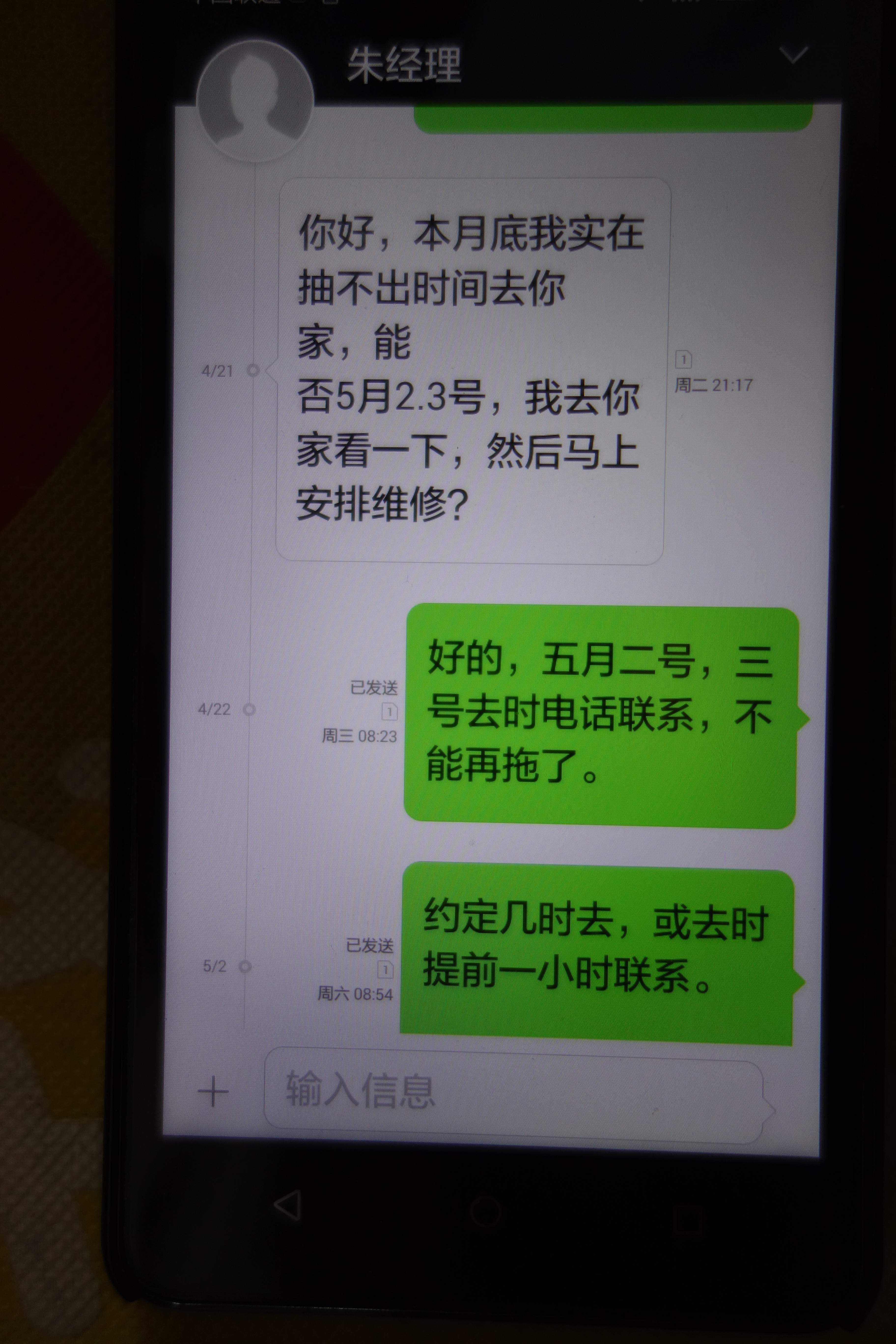 装修公司说愿意和业主沟通一下时间,上门处理 | 2020-05-12 |