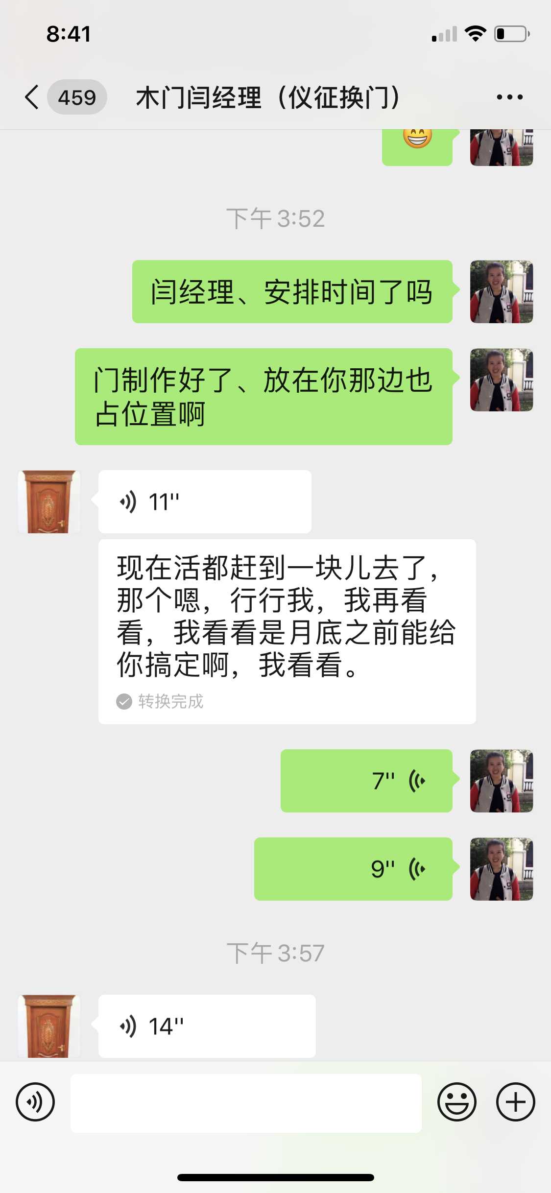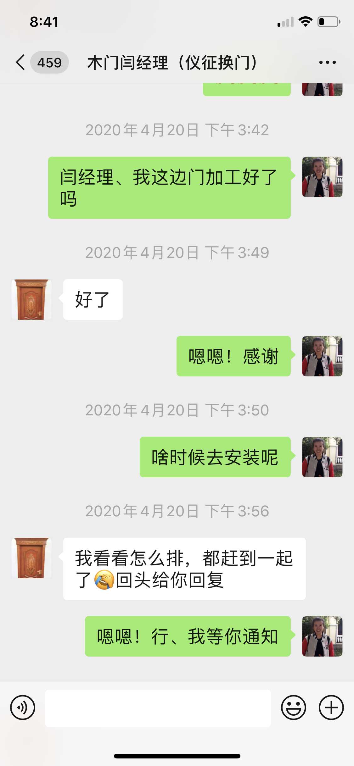 18761696418木门厂家说近期安排时间过去,因为业主在仪征,距离有点远,答应投诉站与业主联系,确定排期时间 | 2020-05-25 |