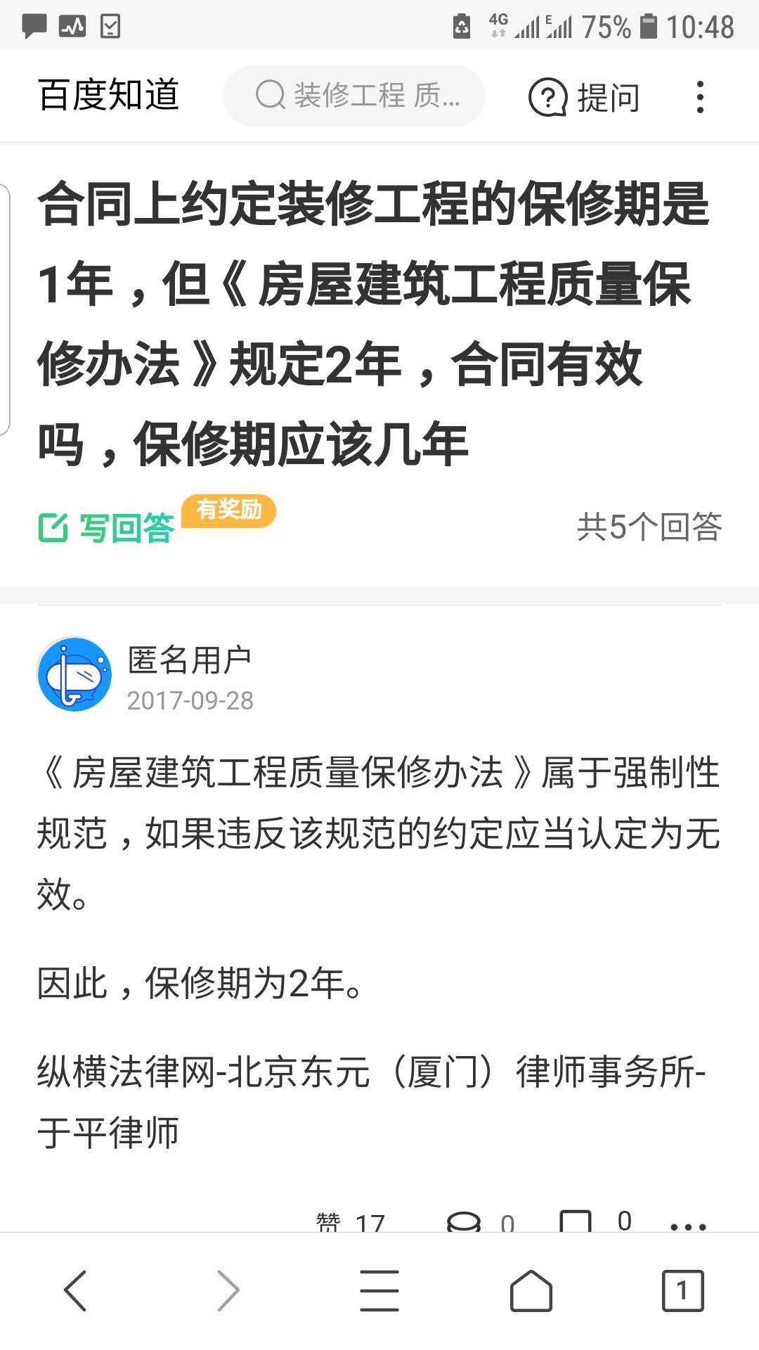 2017年底与南京共想空间设计有限公司签订装修合同,对本人民智路10号证大喜玛拉雅中心D座18楼两套公寓进行室内装修,于2018年4月25日签订验收单,后期2018年10月开始出现墙皮脱落等严重质量问题,因当时负责的项目经理离职,及装修公司搬迁,没有及时联系上装修公司进行保修,后于2020年4月23日和装修公司联系上,装修公司以合同约定一年质保为由拒绝免费维修,工程部人员态度蛮横,我们查阅国务院颁布建设工程质量管理条例及建设部颁布住宅室内装饰装修管理办法两部法律均强制规定室内装修工程最低质保期为两年,该公司无视国家法律自定质保期凌驾于法律之上,合同私自规定一年理应无效。公司座机:025-57058866? ? ? ? 售后:18151628866