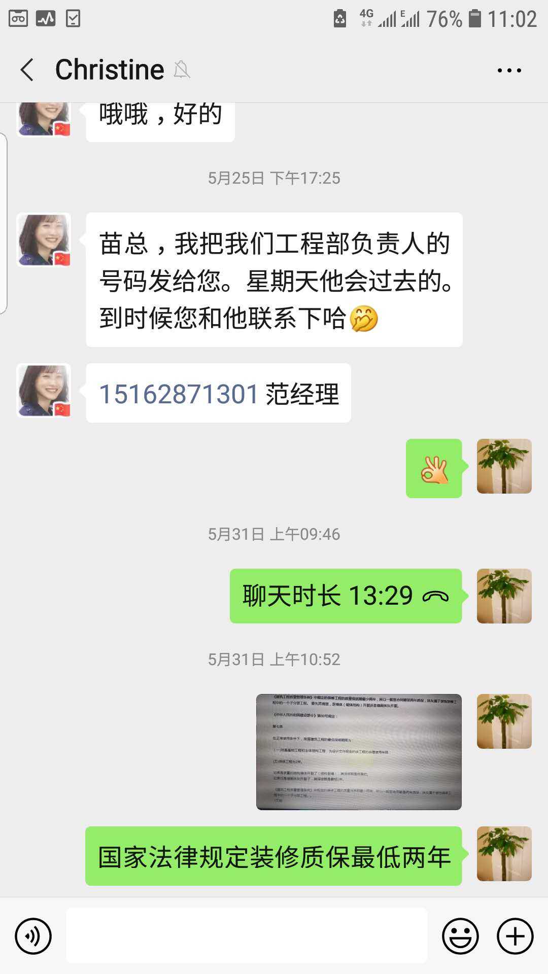 打电话到公司固定电话(前台):一问三不知道。又打电话给消费者提供的另一电话说是汇报一下。6月4日已经打过电话给装饰公司就答应汇报,一直未给投诉站回复,也一直未与消费者联系。如果装饰公司还是按合同条款一年维修期限,建议消费者通过其它渠道维权。 | 2020-07-15 |