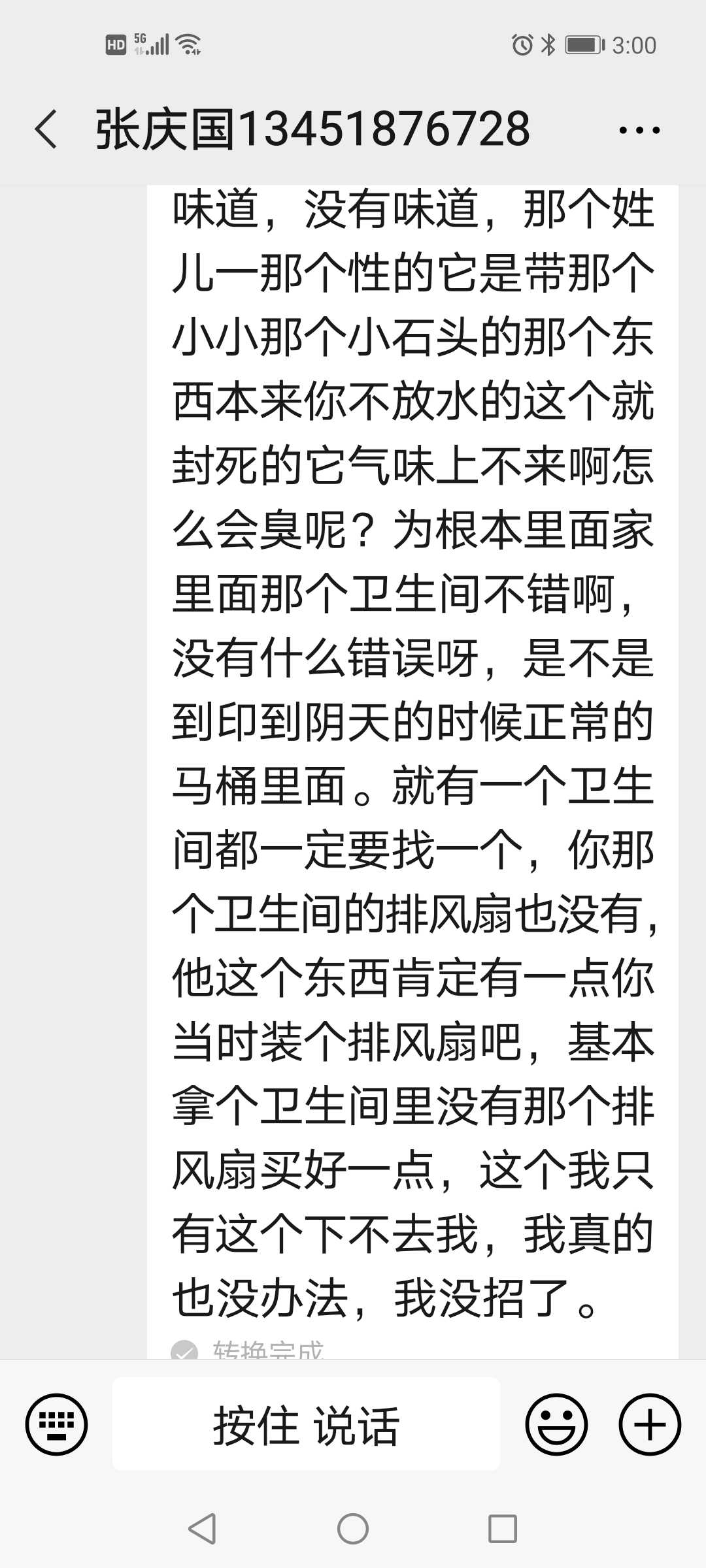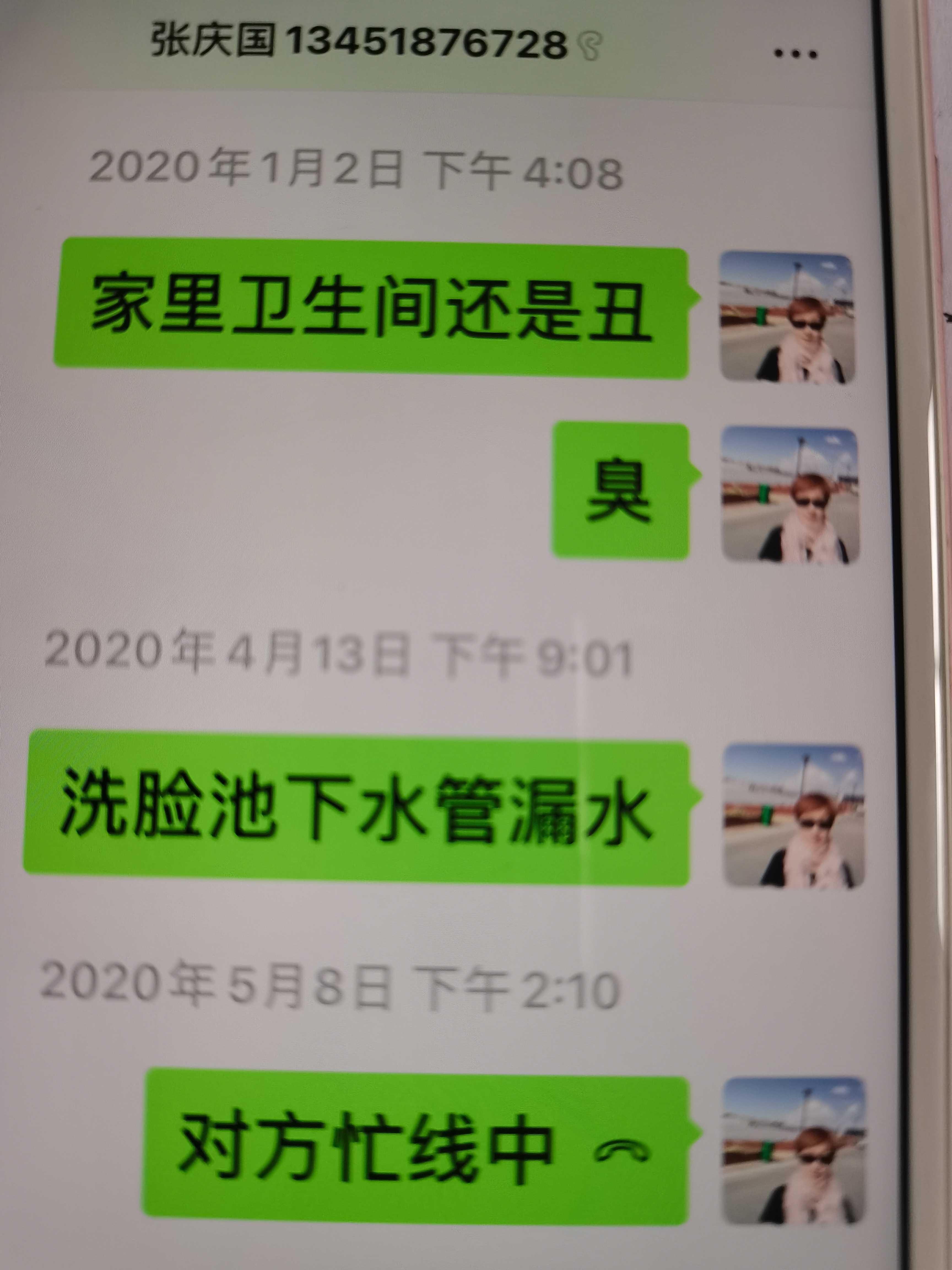 19.5.26与南京终结者装修公司开工,大概8月份结束,20年2月份入住,发现卫生间返臭。项目经理买了一个来防臭安装,导致无法下水,项目经理后来直接说无法解决。问过小区其它装修人员说S弯未安装,项目说已安装!报修电话86465130