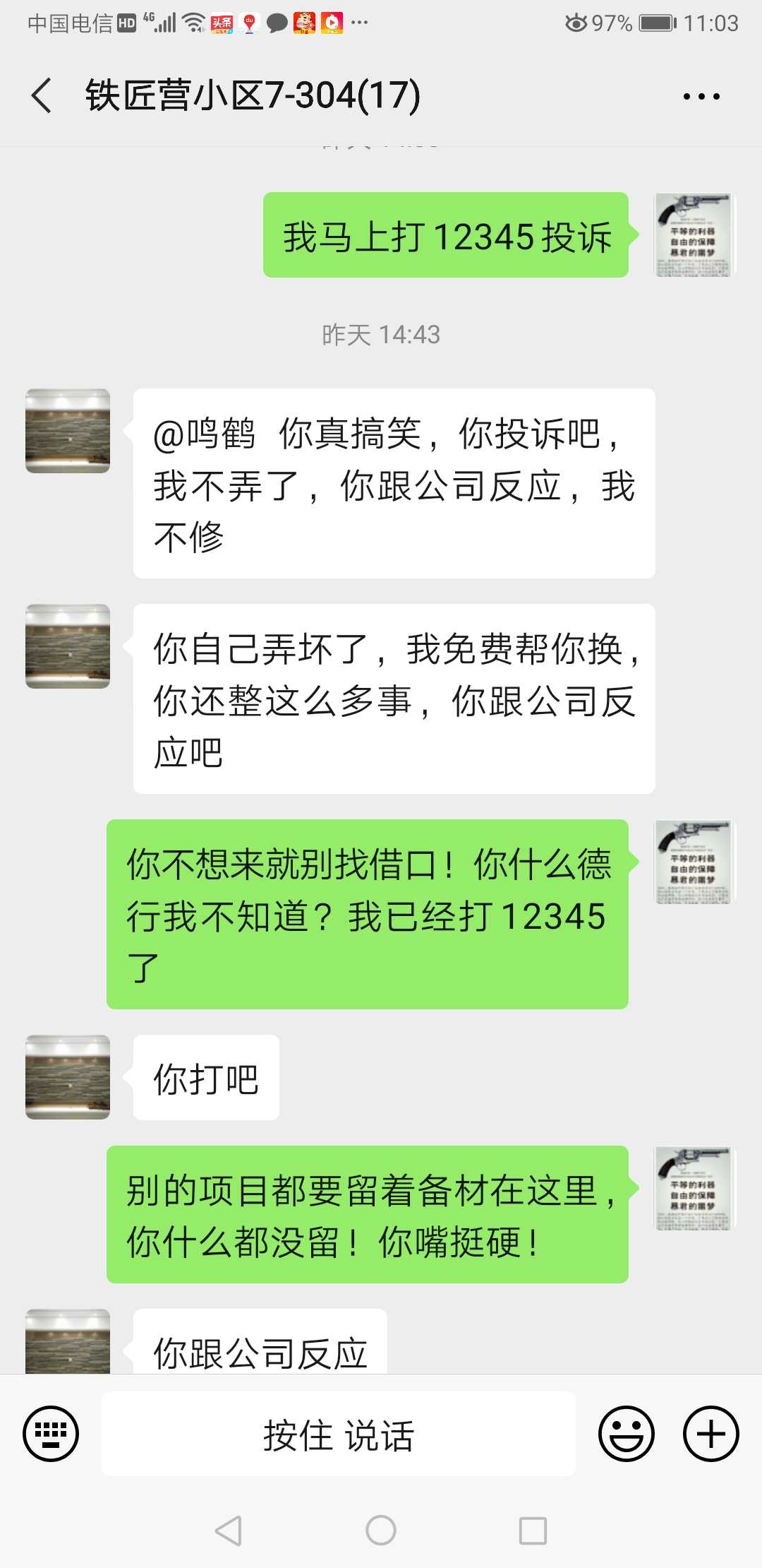 5、门套自己不小心搞坏了,让装饰公司来帮忙维修一下,推来推去;