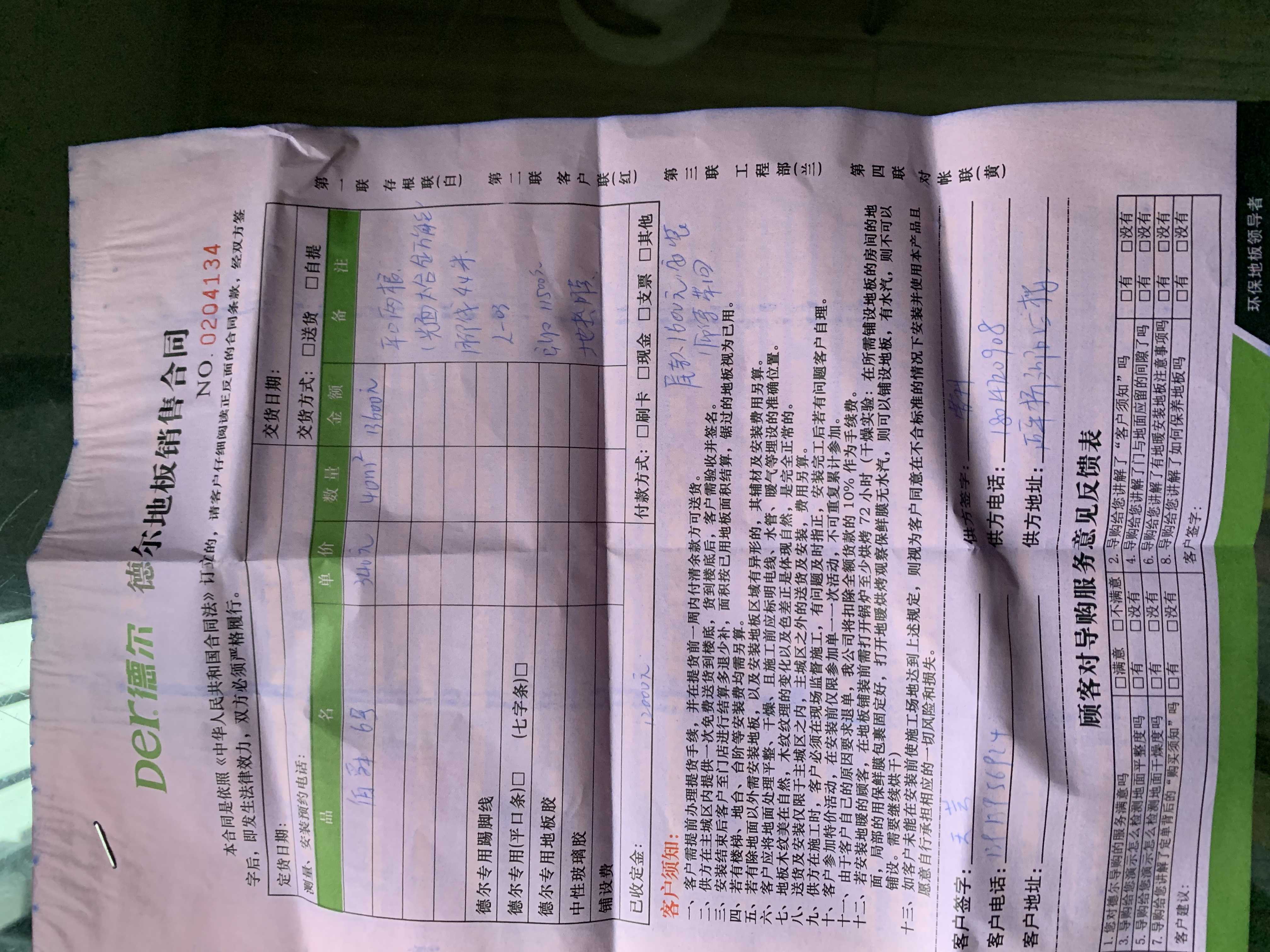 消费者诉求索赔1200元,德尔地板不认可,认为可以派人上门去证明没有问题,双方调解失败。建议用户找其他的途径维权。 | 2020-07-28 |