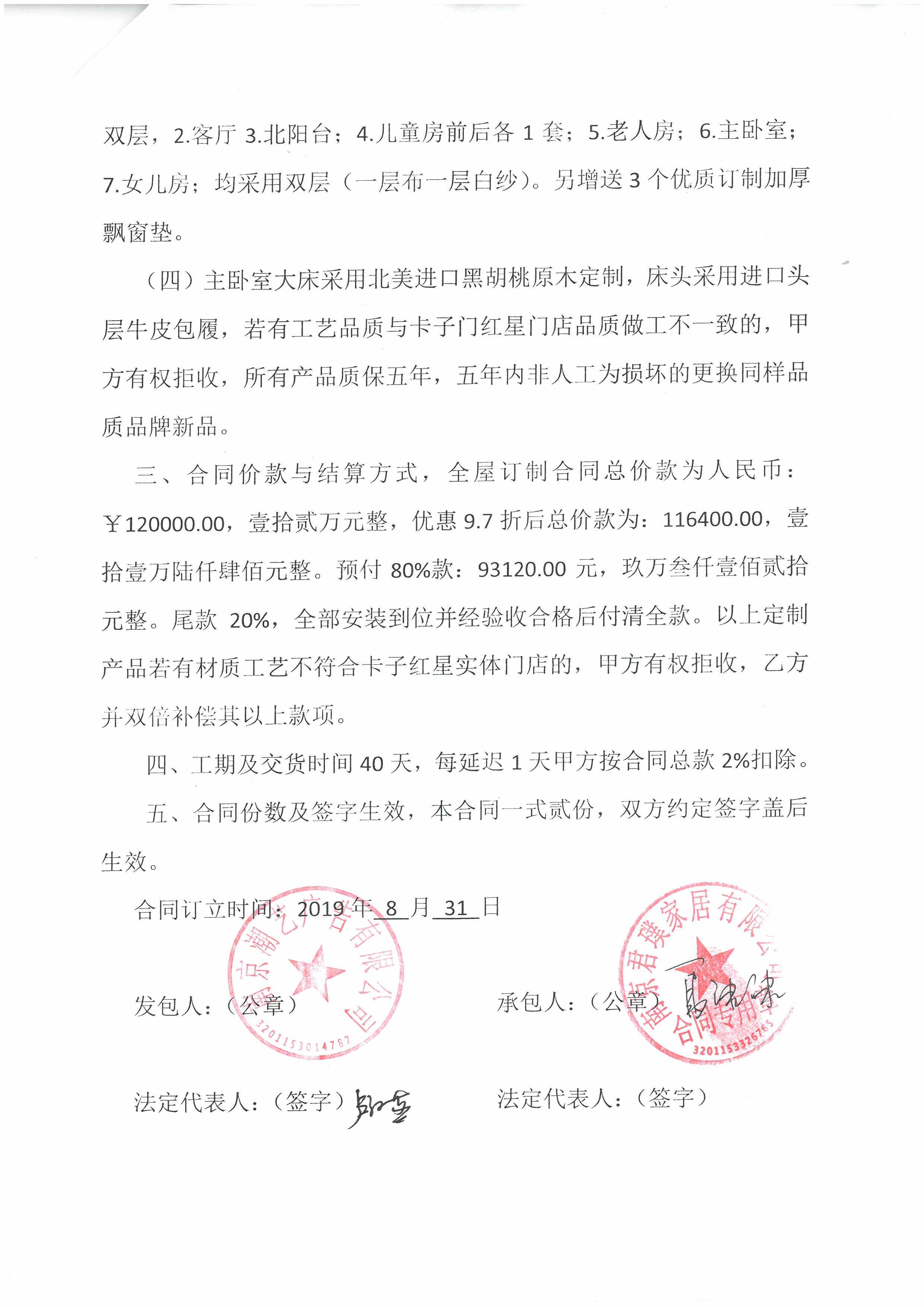 合同2019年8月31日签定的,快一个年头了,已支付80%的款,12万,已93120元,还原木家居东西迟迟到不了,后来直接说做不了,床垫我买的7620的,发给我3909的对方因资金困难为由,款子也退不了,电话多次联系适应退款与相应赔偿,但一直结果,报警两次,均无果。
