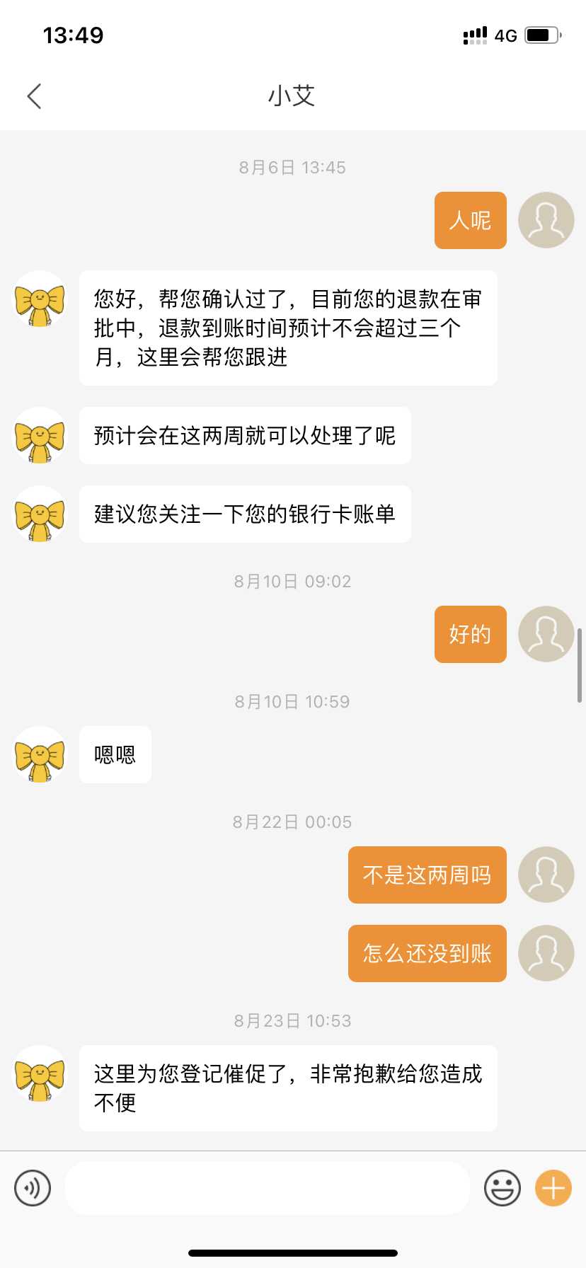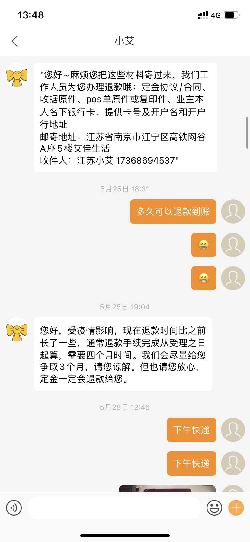 截止2020年9月24日,距离快递给艾佳生活退款流程及材料已经过去四个月,官网电话打不通,客服一直恢复推诿,骗取我的钱财。