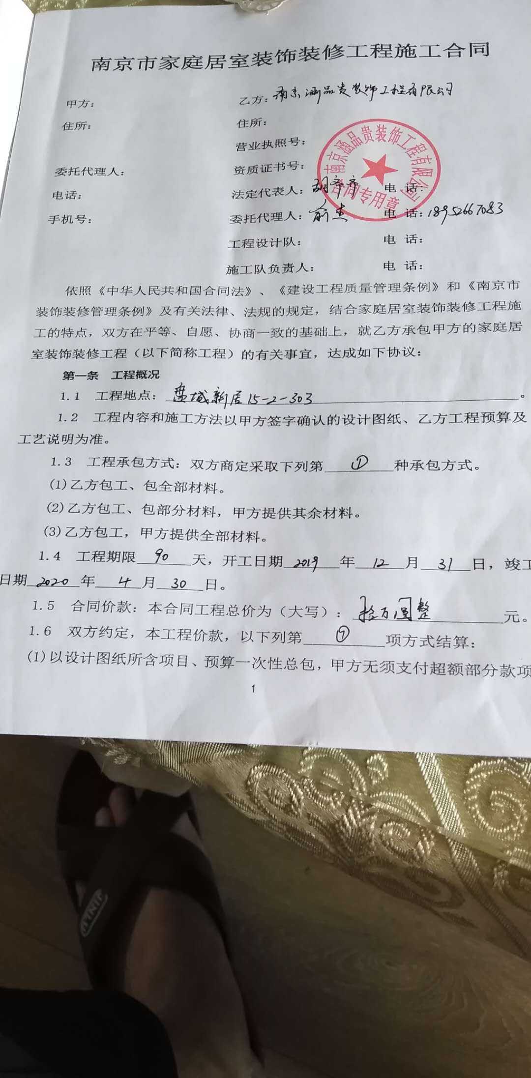我是南京市江北新区盘城新居15幢303的业主,于2019年12月份在网上找到”江苏标点网络科技有限公司(标点家装)”。他们帮我们推荐了“南京涵品贵装饰工程有限公司”,经过协商后签定合同十万元全包工程期限90天合同,签定日期2019年12月31日;竣工日期2020年4月30日;同时我们也和标点家装签定了“第三方电子合同”。就是这十万元必须要支付给标点家装然后由标点家装按工程进度来签订三方协议,当日付百分之六十,瓦工完工,木工进场前付百分之二十;木工完工,油漆进场前付百分之二十,可是我家七月初就把所有的装修工程款都付给了标点家装,现在从八月头开始乙方涵品贵装饰就没人来施工,现在我家主卧,次卧,书房地板,厨柜门,厨房门,卫生间门,和卫生间洁具,移门,面盆等没有做,初步估算二万元左右。可是标点把二万元工程款扣着作为工程质量保证金不给施工方,现在双方互相踢皮球!一个不愿付尾款一个不愿施工,我家急等用房,因为十月份家里孩子要结婚,这是用于婚房的装修,现在他们双方都不闻不问,不知道是江苏标点网络科技有限公司(标点家装)的问题还是南京涵品贵装饰工程有限公司的问题, 江苏标点网络科技有限公司(标点家装) 说他们已支付 南京涵品贵装饰工程有限公司 项目部百分之八十的工程款,南京涵品贵装饰工程有限公司说没有尾款工程无法施工。4001098899