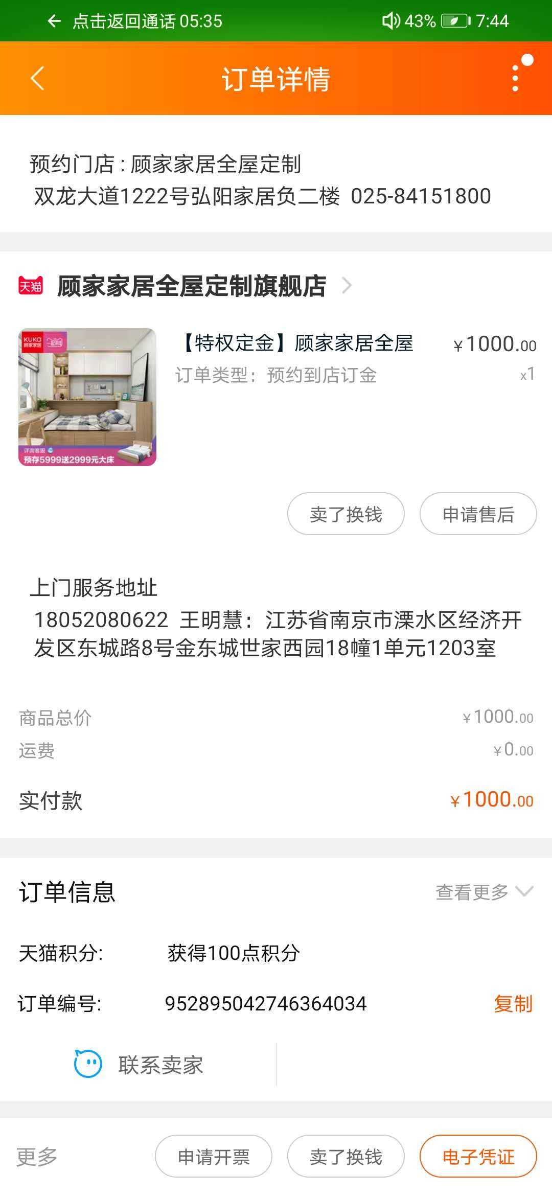 服务方:顾家家居全屋定制(南京江宁弘阳店)【以下简称“弘阳店”】