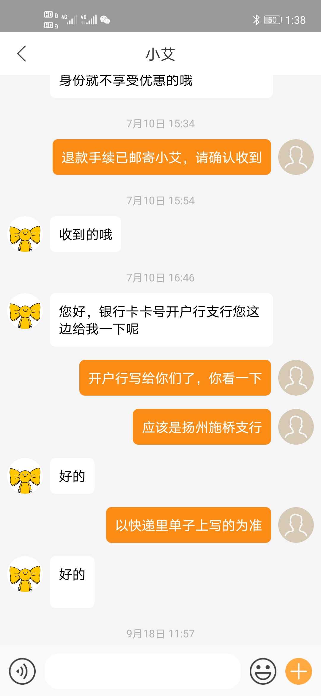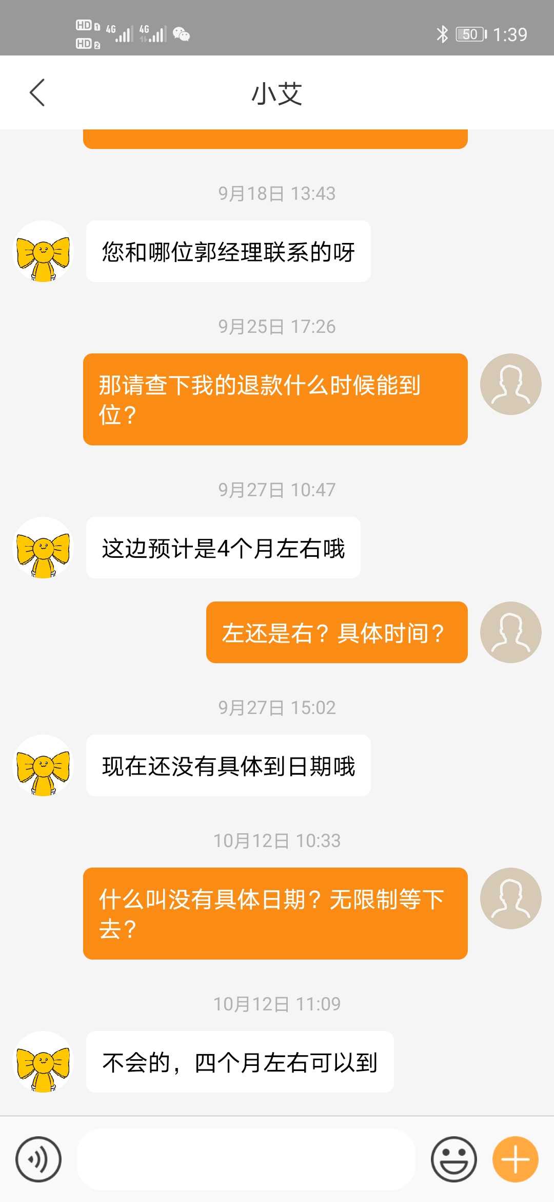 已经和艾佳客服对接此事,已通过申请退款,要求艾佳速度处理 | 2020-10-22 |