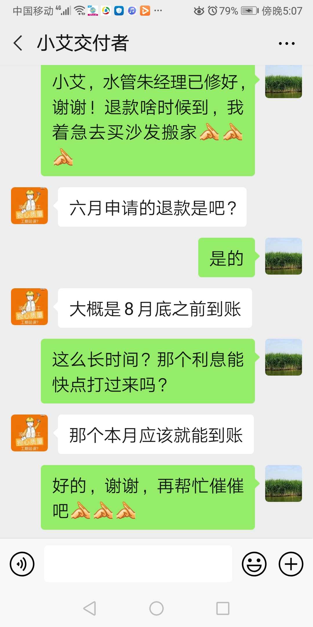 装修负责人不太清楚退款问题,投诉站打客服电话:4008009360 ,客服继续回复财务有排期,还在待退款状态。投诉站跟进 | 2020-10-27 |