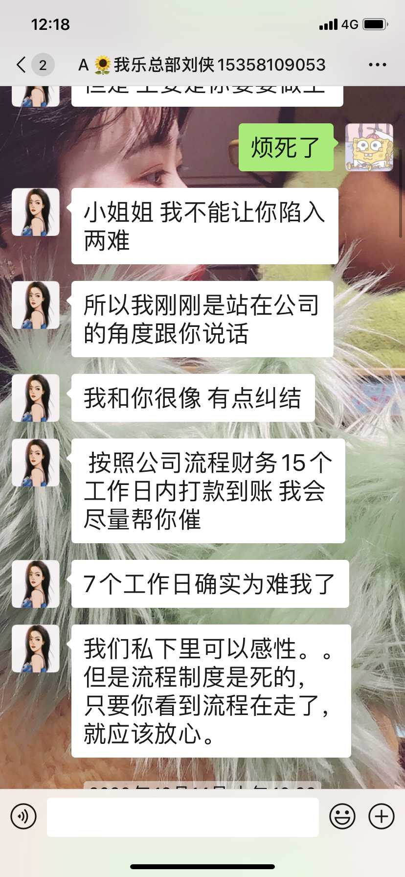 我乐家具刘回复:20年退款公司未批准,21年重新走流程,1月4日开始10个工作日之内一定处理结束,还会走特批流程。消费者对这个说法已经不信任,投诉站继续跟进 | 2021-01-05 |