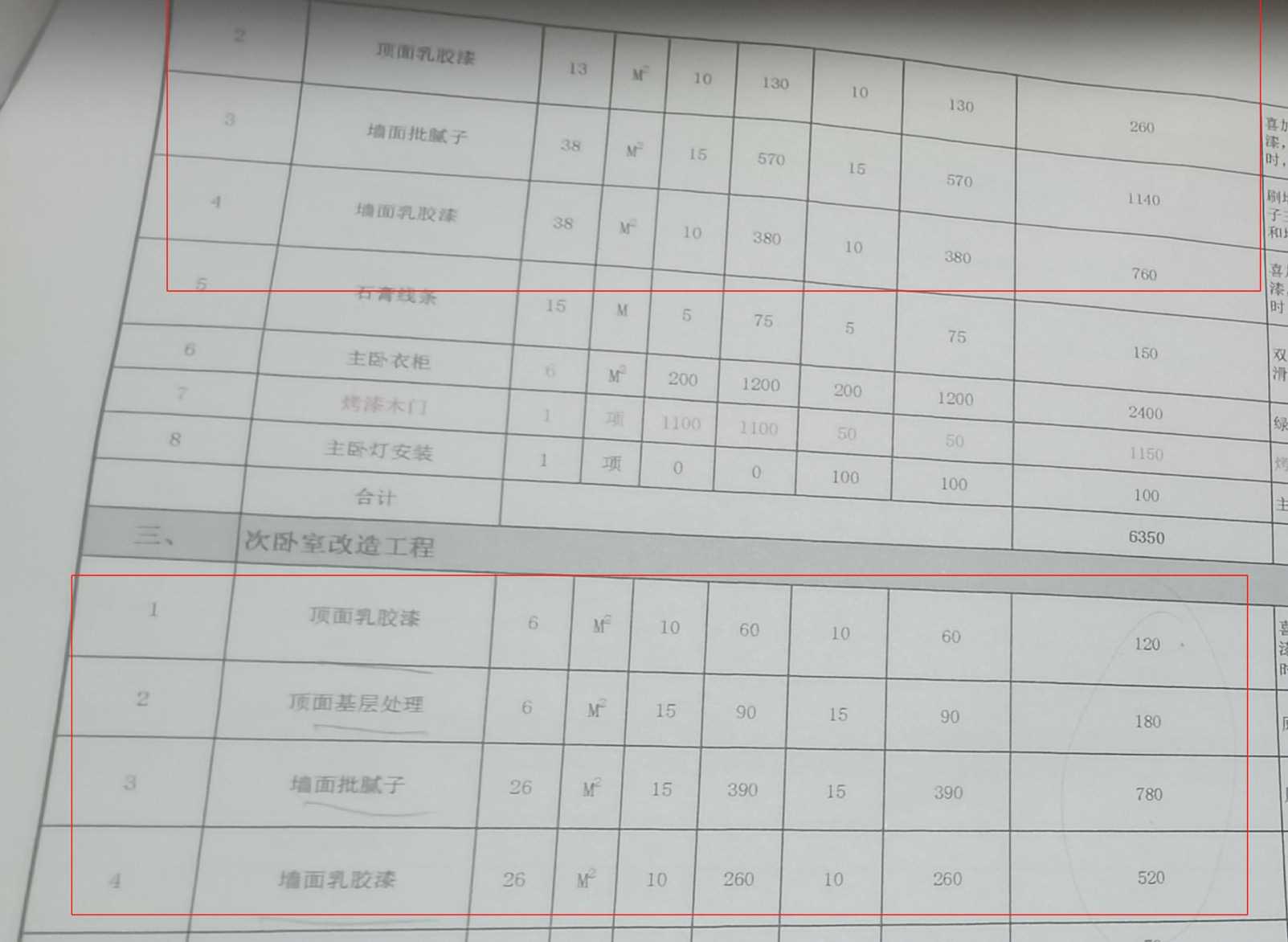 1.施工方承担主卧室、次卧室及客厅墙体恢复原状的费用,共计3360元(此部分参考市场价);请有资质的第三方重新粉刷的费用,包括:顶面基层处理,顶面乳胶漆,墙面批腻子,墙面乳胶漆,共计8400元,详见施工方提供的工程预算书。