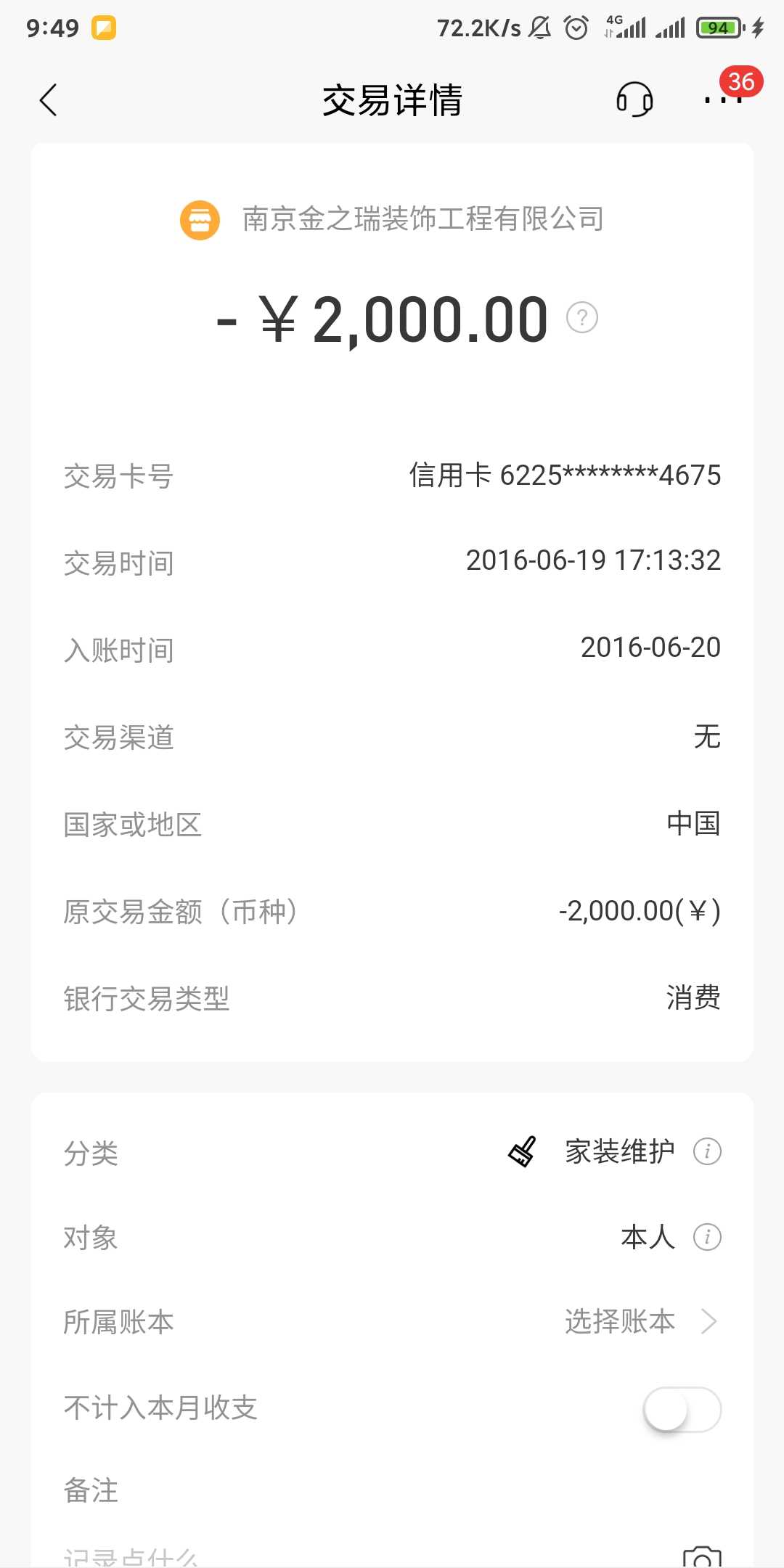 2016年6月和南京金之瑞装饰公司签订装修合同,2017年9月结尾款