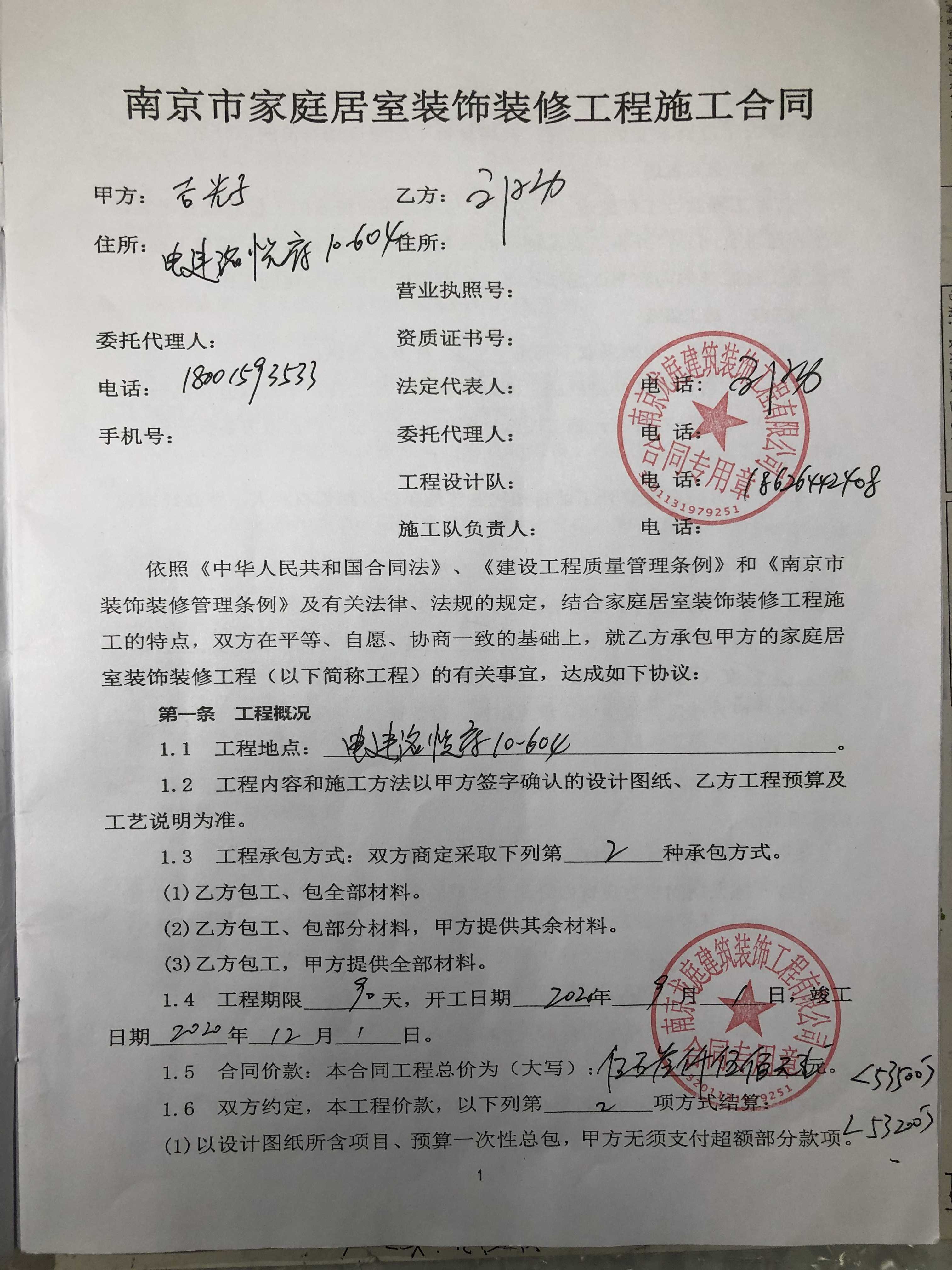 南京龙庭建筑装饰工程有限公司无期限拖延,装修质量极差,态度恶劣并威胁业主!该公司位于南京市栖霞区燕子矶街道笆斗山路2号电建洺悦府一期北门(后门)门面房,因公司就在小区门口方便且基于公司负责人承诺信任,双方于2020年8月29日签订南京市家装合同,约定工程期限90天,开工日期2020年9月1日,竣工日期2020年12月1日,总费用53200元。至今2021年1月20日,木工活依然没有验收,厨房厕所未安装集成吊顶,公司不让水电工进场做最后收尾安装,燃气表被木工弄坏一直漏不予处理,进门可视电话被砸墙师傅一开始就砸坏了不予置换。 具体过程如下:按约,每个步骤结束后需双方当面验收,甲方通过验收合格支付相应工程款。2020年8月29日签订合同当日甲方支付定金5000元;水电工铺设好电线水管后甲方验收合格支付了水电工全部款项18725元(包括水电工最后工程后期收尾费用一起支付完成);瓦工完成甲方验收合格支付了瓦工全部款项18725元;木工何师傅进场后总不见踪影工期一拖再拖,质量极差,甲方要求整改并按时完成,乙方与木工均不予理睬,工期拖延2个月之久,期间要求甲方支付木工款项,但是木工始终不当面验收工程,甲方不满意不愿支付,乙方就威胁如果不支付后面就无限期停工。甲方无奈之下支付4000元(按合同约定木工验收合格应支付5000元,油漆工验收合格应支付4000元,尾款1750元。),并要求木工尽快来整改,对于已经无法弥补的公司要扣木工相应费用,木工费用暂时不能给木工。但是公司没有回应,之后油漆工进场,粉刷电视背景墙时公司又以次充好,强行要求油漆工使用不好的色浆,导致背景墙全花,(有油漆工电话录音为证),甲方要求整改,公司要求先付尤其费用,后油漆工不好意思,从别家拿来一些剩余色浆再次粉刷才算基本解决。期间又三番四次联系公司整改木工活,依旧无人理睬。2020年12月23日甲方最后一次联系乙方负责人李总,李总答应并承诺2020年12月25日木工上门整改,结果甲方苦等一天又被公司欺骗,无人上门处理,之后甲方联系公司说明,事已至此,甲方对乙方不受合同的行为不再信任,由于年关将近,安装地板和柜门一再延后,工人即将放假,买的电器家居一再滞留物流处,无法继续放置,木工活就此停止,木工不来验收不应给其相关工程款,甲方开始安装地板、柜门等,并拿走家里钥匙,确保家中财务安全。现时至2021年1月20日,乙方要求甲方支付剩余款项,并说木工上门整改,对于不能整改的就拆掉,这种威胁对于甲方是不能承受的经济损失和精神压力,目前甲方还有6750元未支付。