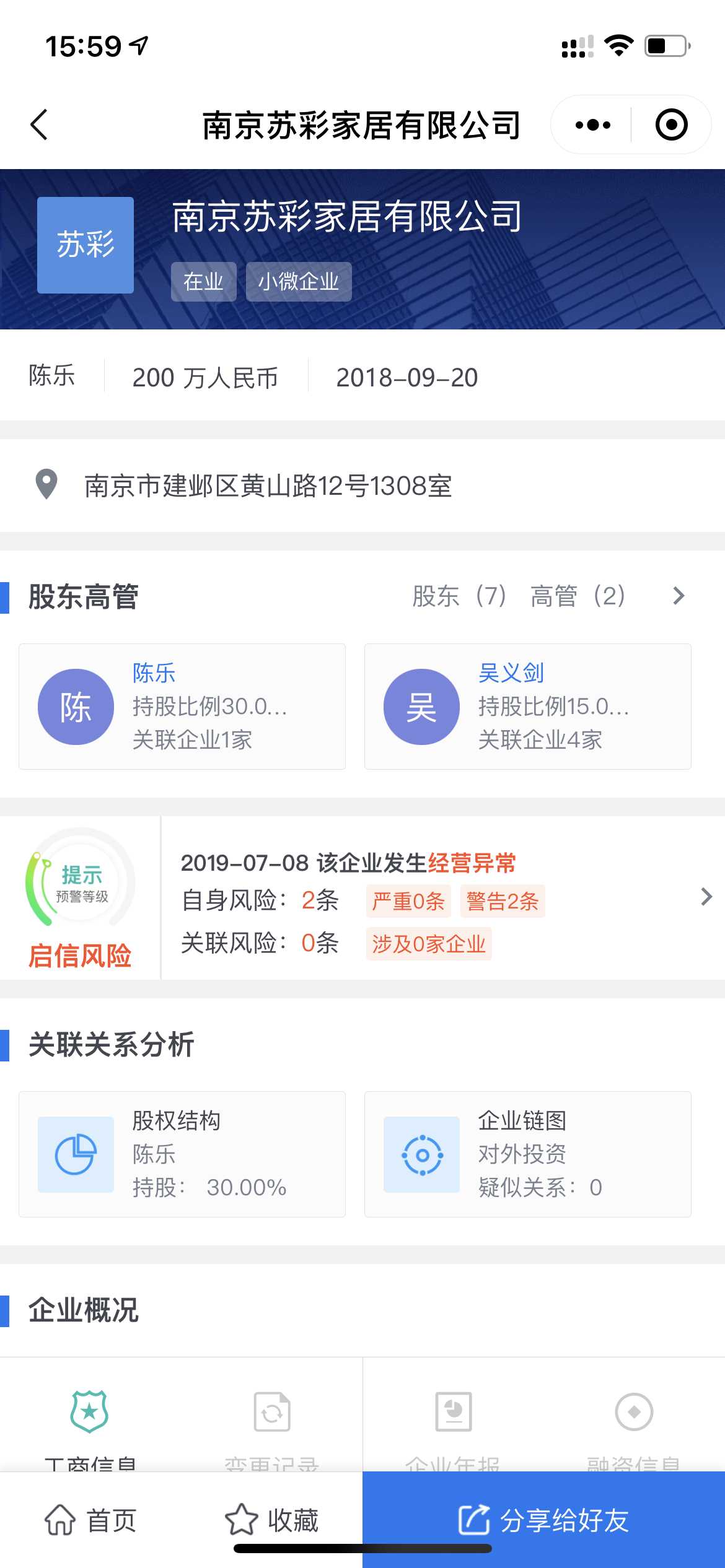 对 苏彩家居 的处理过程: