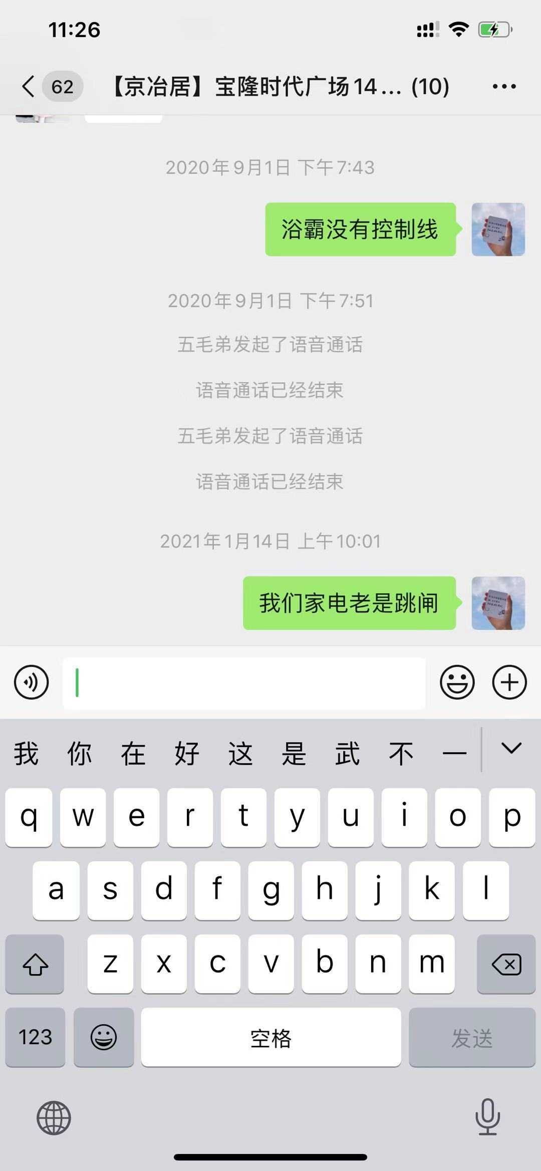 联系到装饰公司负责人,说这件事已经对接下去,转邓总负责18851057439。邓总回复昨天下午已经和消费者沟通过,原因是消费者家安装的浴霸承受不了原来空气开关的负荷,之前我们就建议过更换