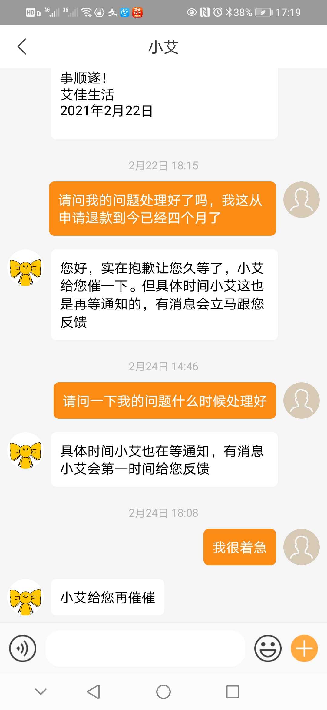 | 投诉类型 | 不讲诚信 | 投诉人 | 付** | 被投诉单位 | 江苏艾佳家居用品有限公司 |