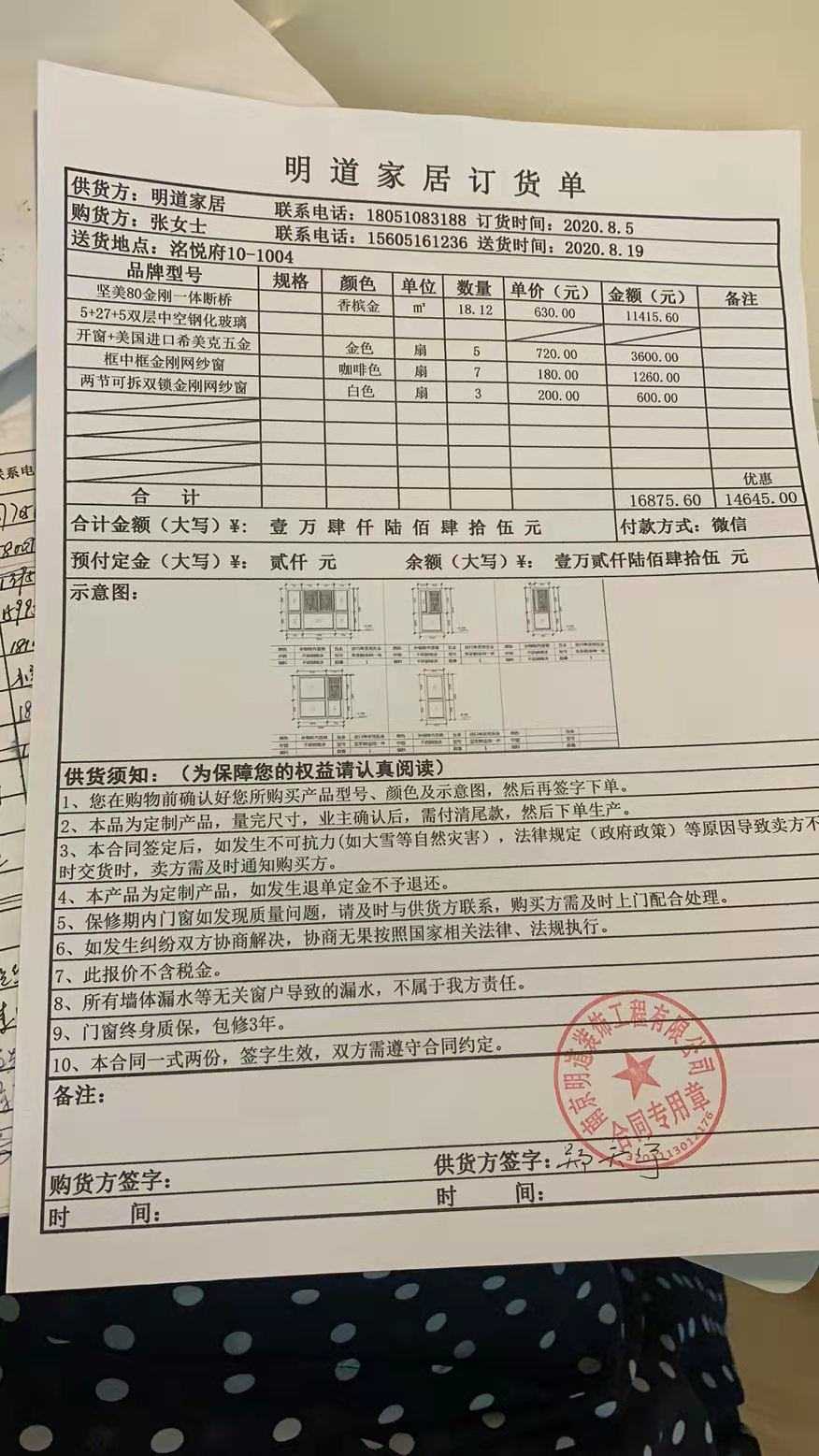 明道装饰负责人说:我们公司是先装修后付钱,不代表装修之后消费者还不给钱的道理。如果质量有问题找个专业的人来进行检测,该我们的责任我们承担, 该支付的费用必须全部支付。解除合同当时我们没有施工结束,也无验收,不存在我们有义务去售后。回复问题1:水电安排费用都没有给尾款,无法质保,电线有接头属于正常。问题二:解除合同时不确定防水这块费用是否扣掉,需要查一下,消费者瓦工这块扣了我们3000元钱。问题四:扣了质保金1400元,就当纱窗的钱。 总货款里扣了6000多钱,工程没有做完,我们没法售后,合同已终止。 | 2021-03-16 |