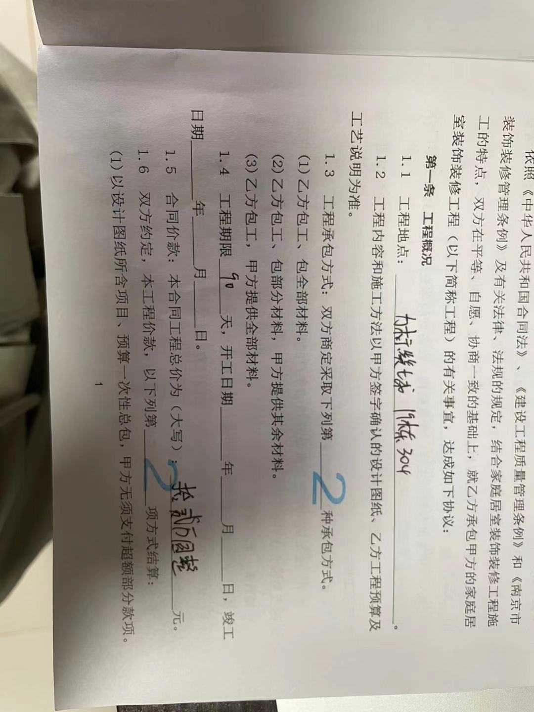 本人位于浦口区四季嘉园的普通毛坯住宅,于2020年9月19日与南京为开装饰签订施工合同,并缴纳第一笔开工费;2020年10月25日正式开工,当天缴纳材料进场费,总计共支付115763元;按照合同约定,90天的施工周期,一直拖延至今尚未完工,在我本人多次催促之下,一直没有人前来协商解决,无人施工,严重拖延工期,以致我的生活受到影响!