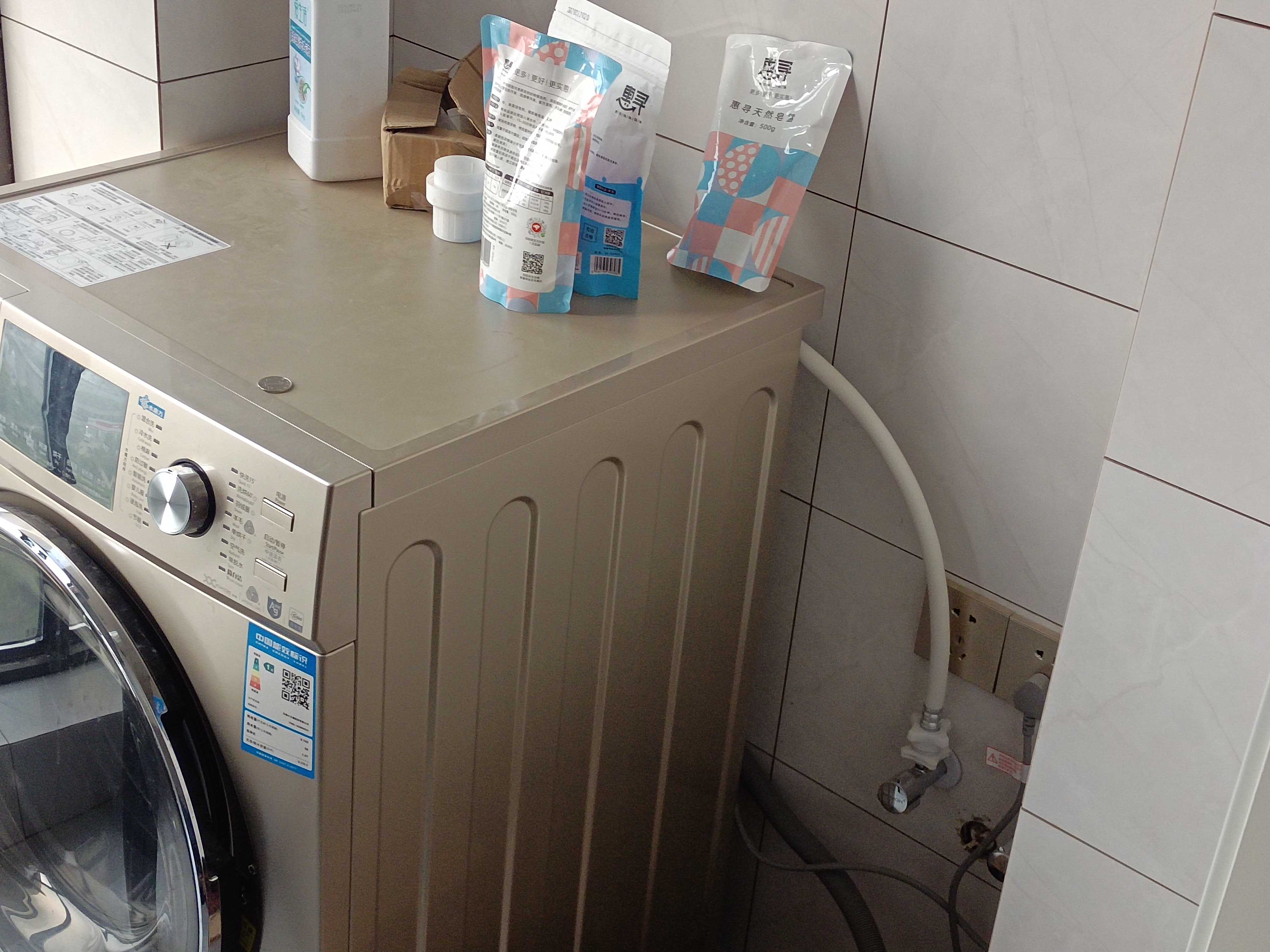 材料不合格的,也已经另外支付费用。洗衣机柜子没有安装 ,厨房水电也没安装,大理石把墙面也弄坏了,需要面修补