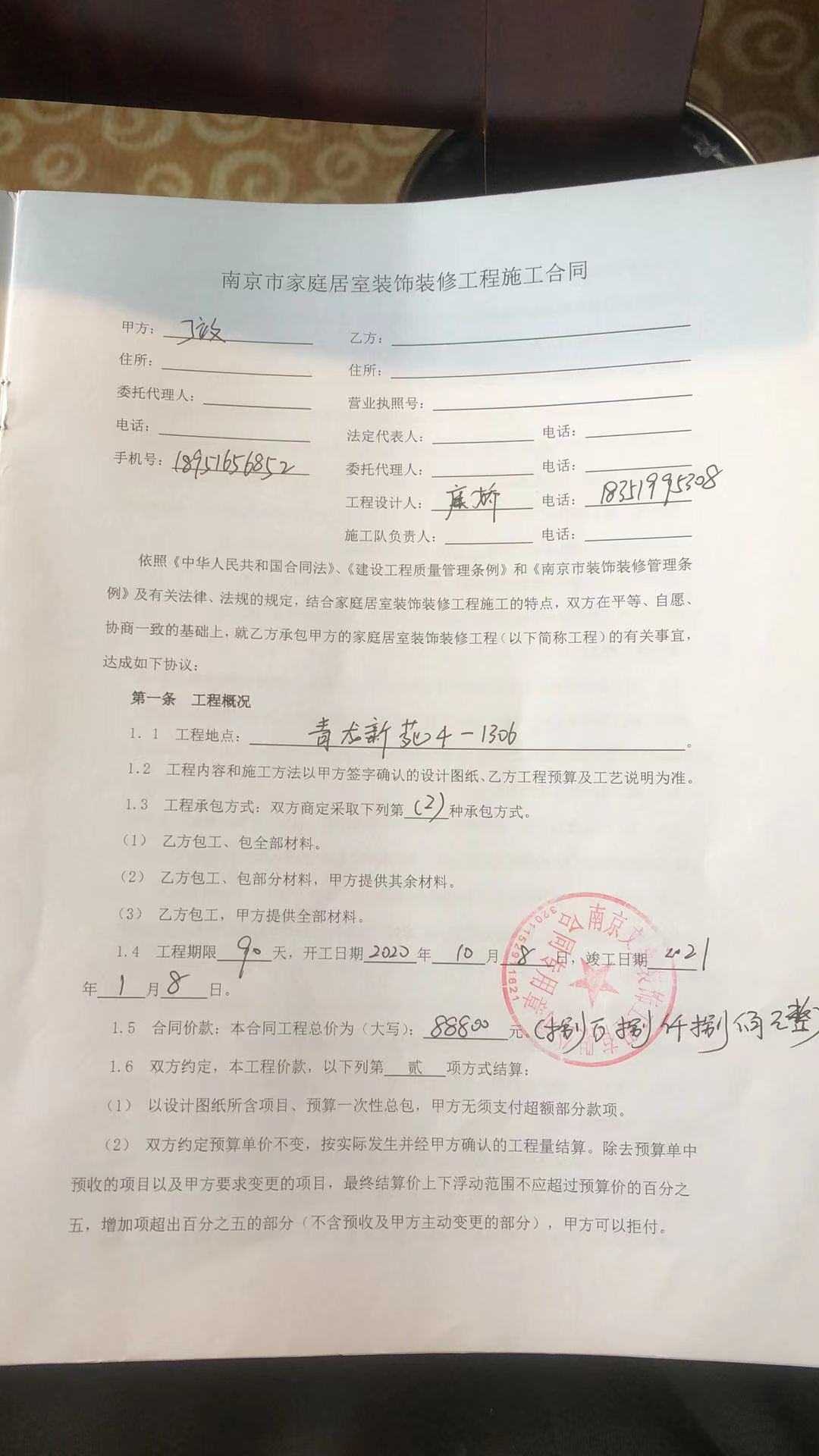 (合同的签订人是丁立文,就是我对象,我们即将结婚,已经被装修拖延了婚期)