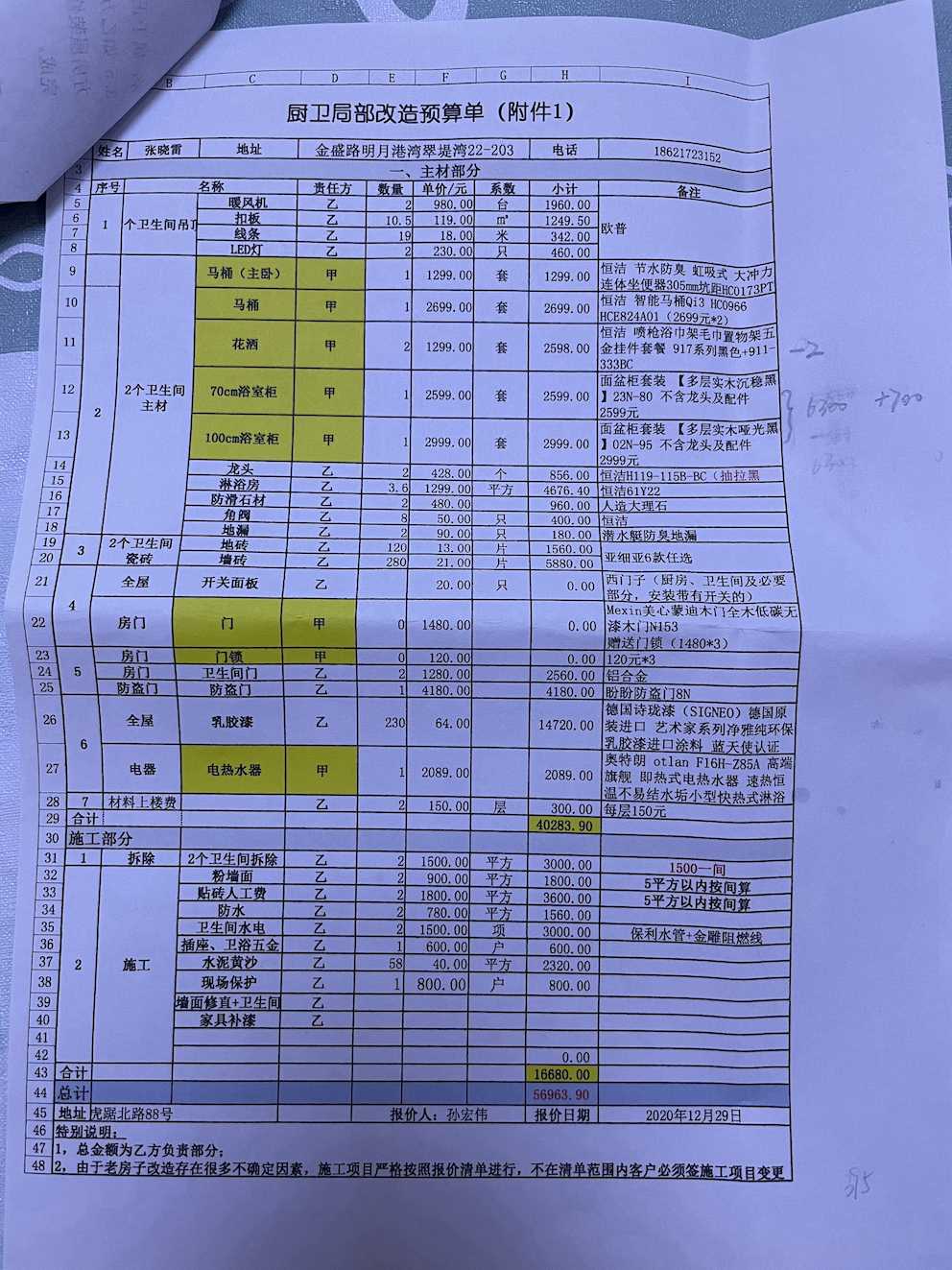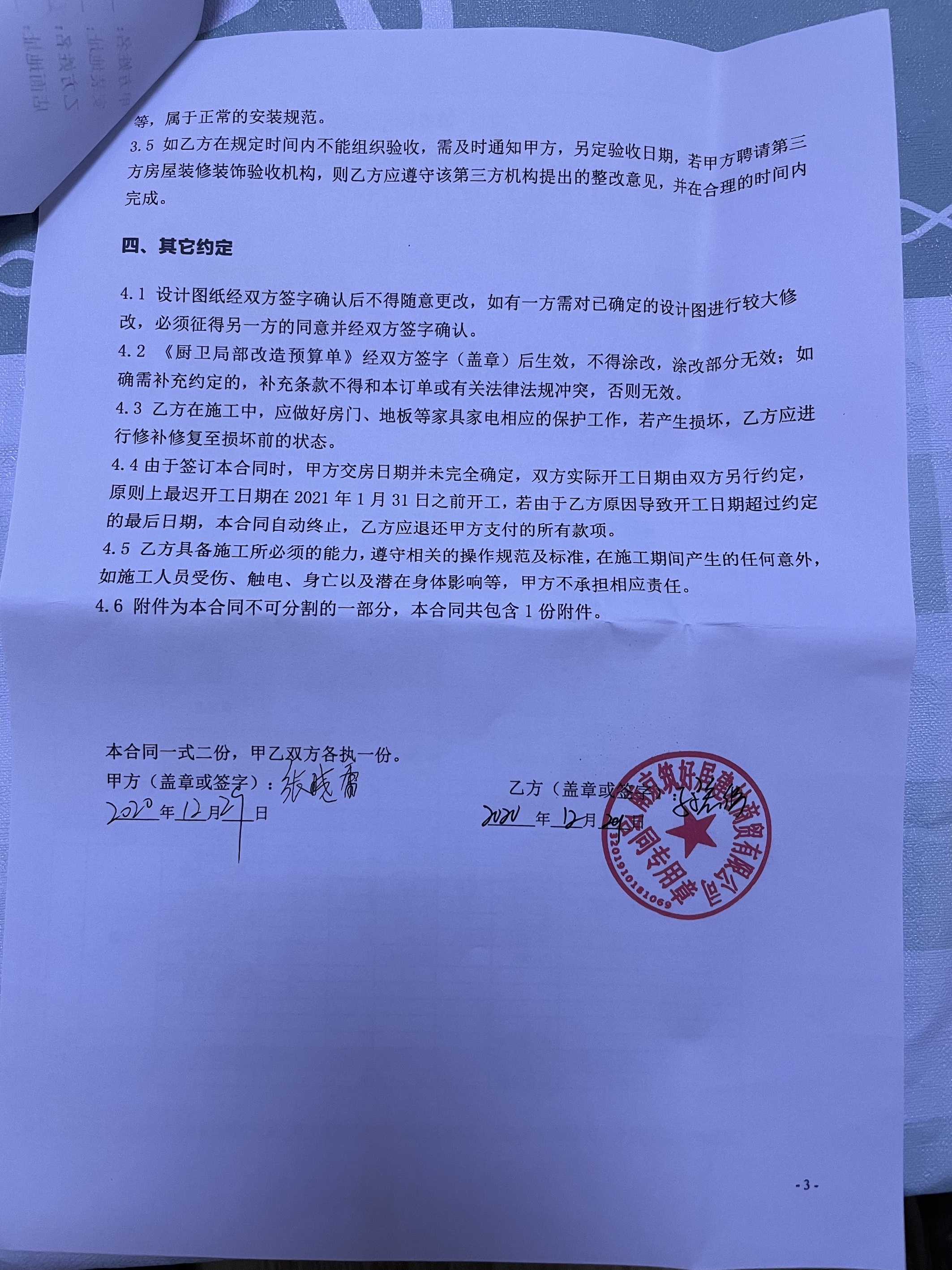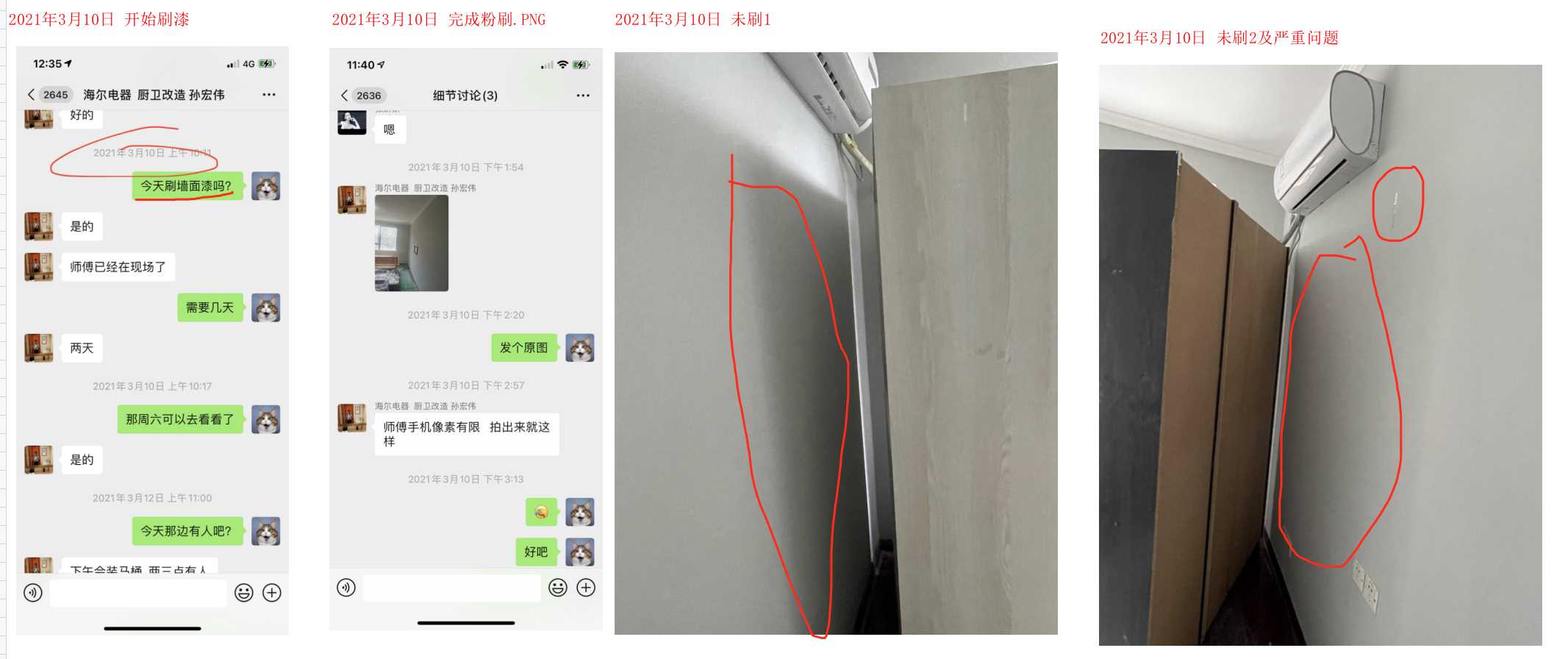 与“小工匠厨卫改造”2020年12月29日签订装修合同,存在诸多问题,现在就其其中问题进行逐项列举如下,本次投诉内容为下述第2条。