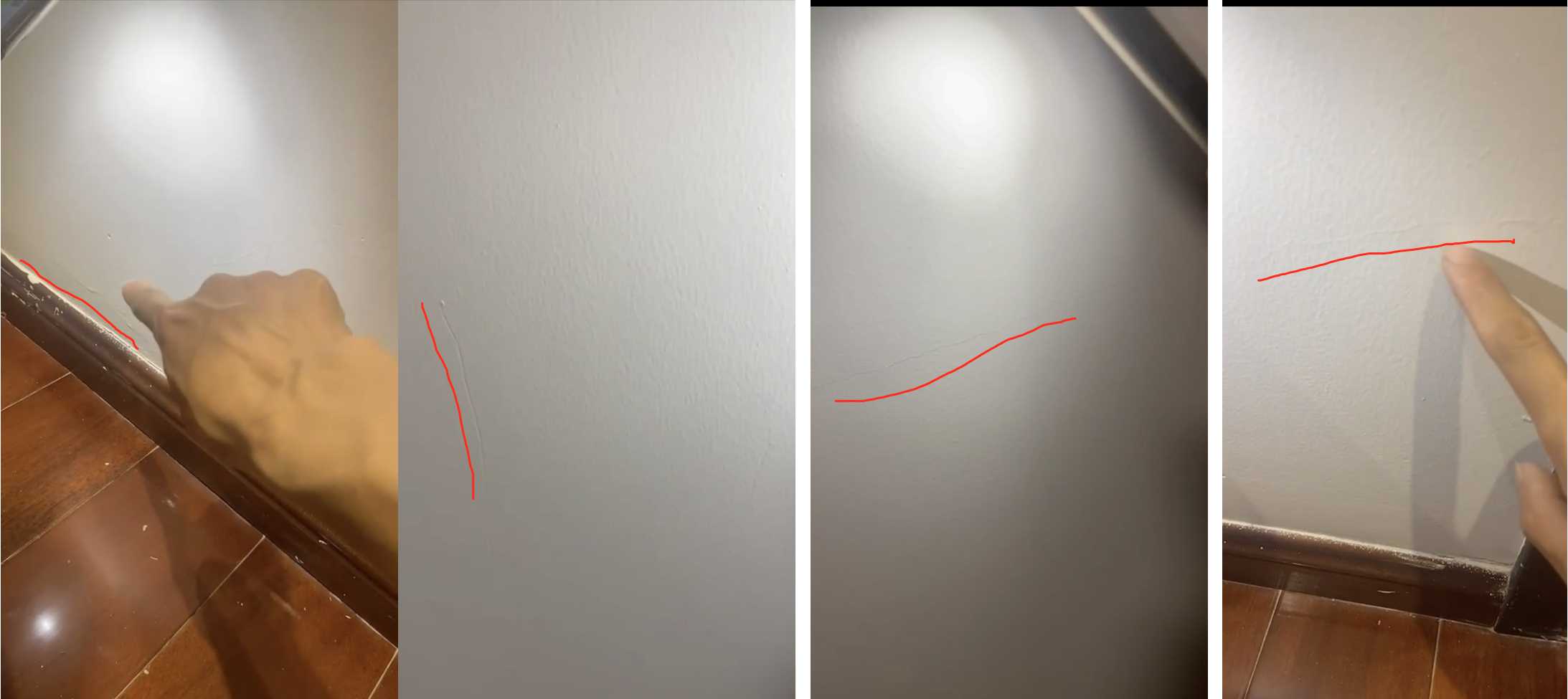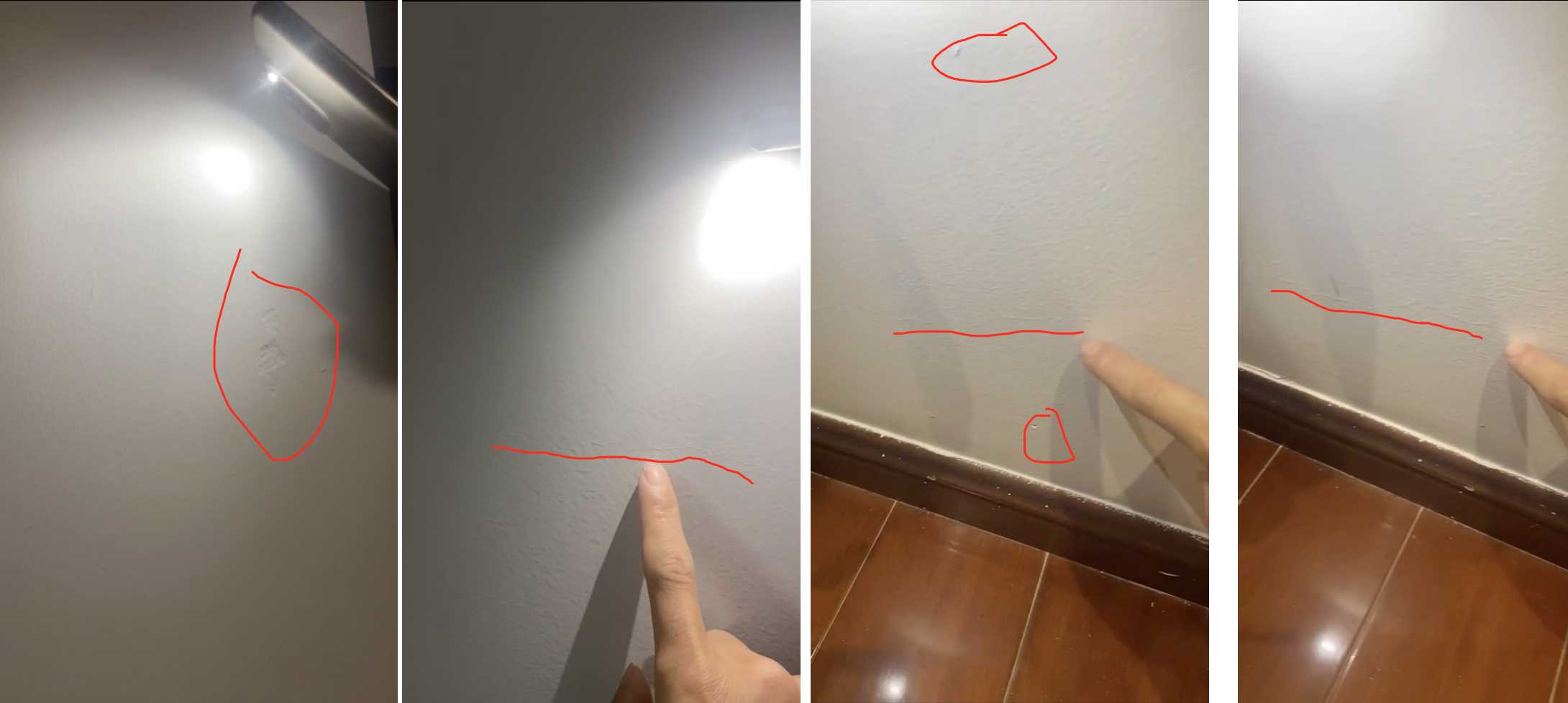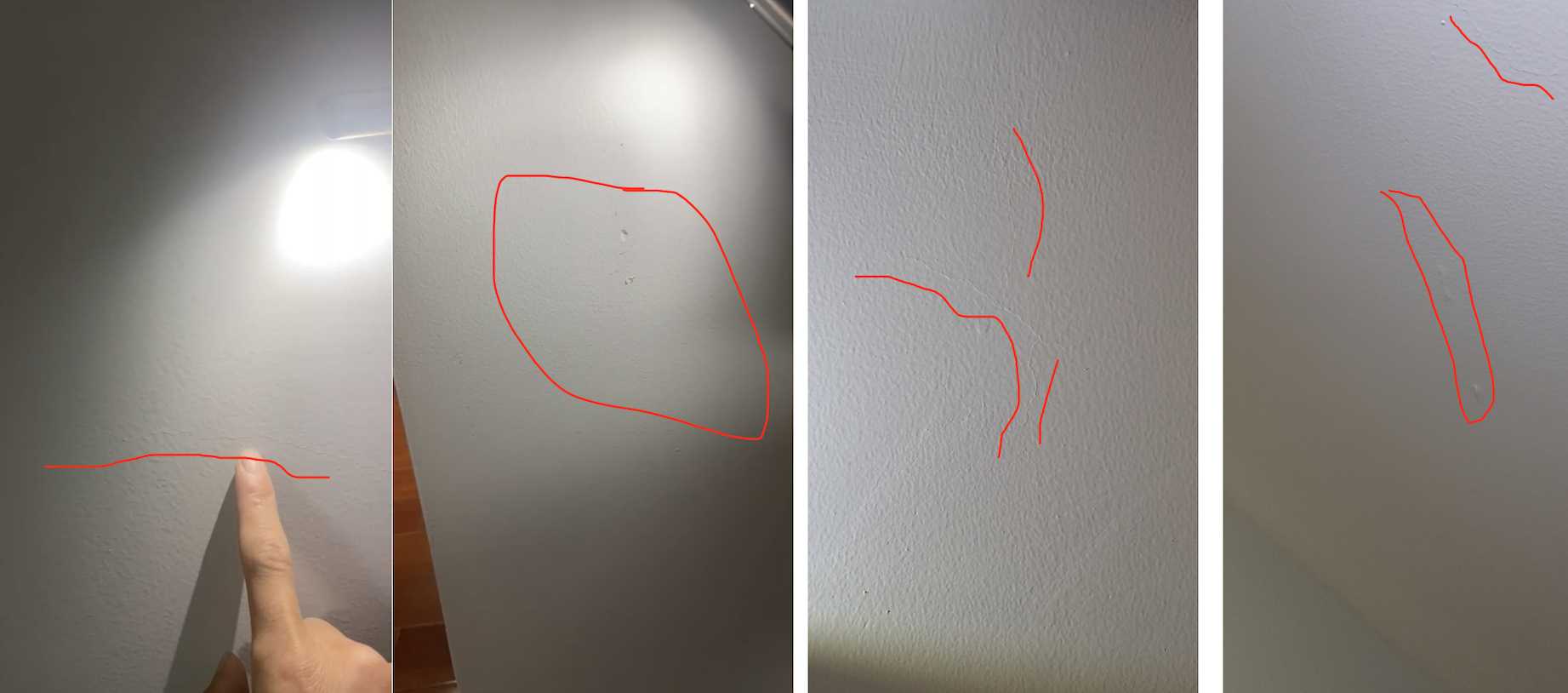 4,吊顶压条手艺粗糙(留有图片),后修复一部分,剩余部分以各种托词不予修复;诉求:承担我方后续修补费用1100元。