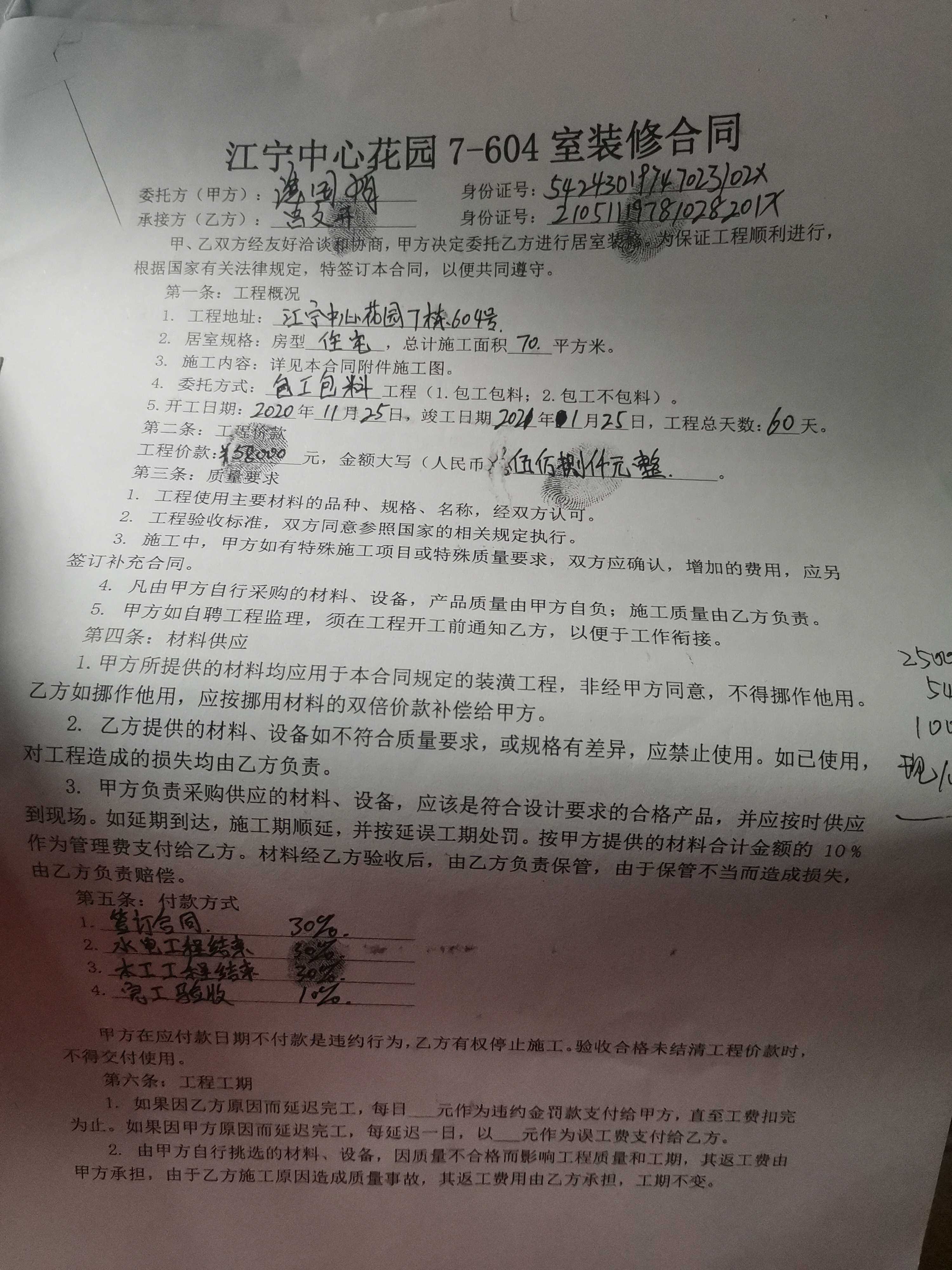 1、 双方签订合同。约定工期为60天,即2020年11月25日到2021年01月25日。现已延期4个月。