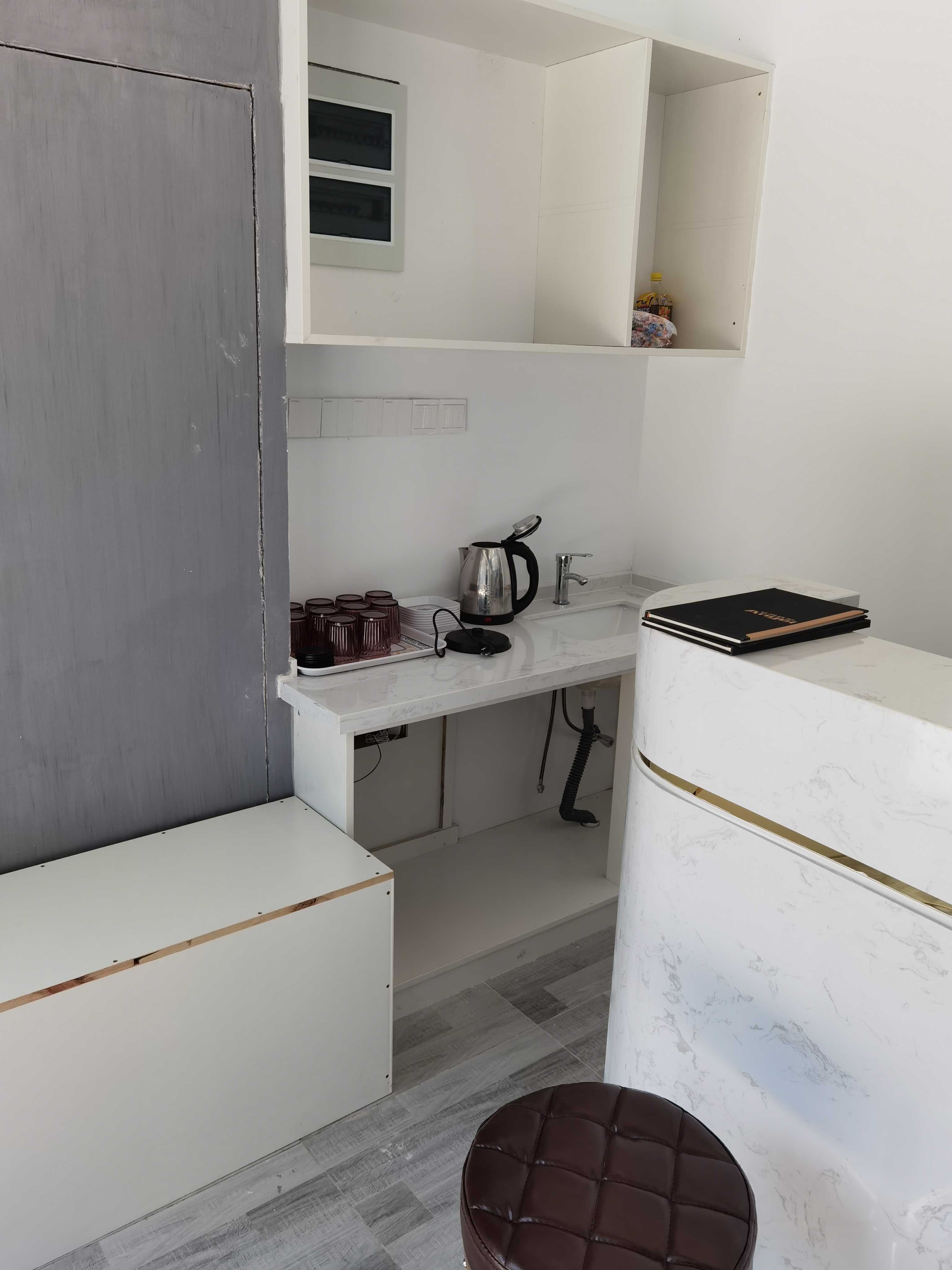 目前装修装一半, 停工了,施工人找不到, 公司也找不到(当时就在店铺店的合同), 中途还恶意加东西, 现在未施工结束的有:柜子没有装、 柜门没有、 门没有、 大理石台面没有搞、 电线没有搞、 灯没有搞好, 我已经找人把灯和线接好了 还刷漆了