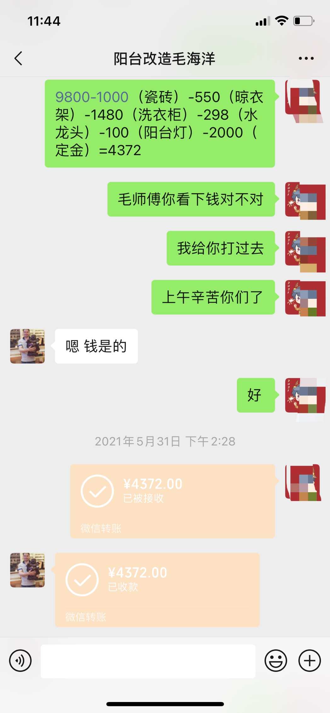 2、墙砖改造工程没有全部完成,并表示甲方需另外加钱才可继续进行墙砖改造。